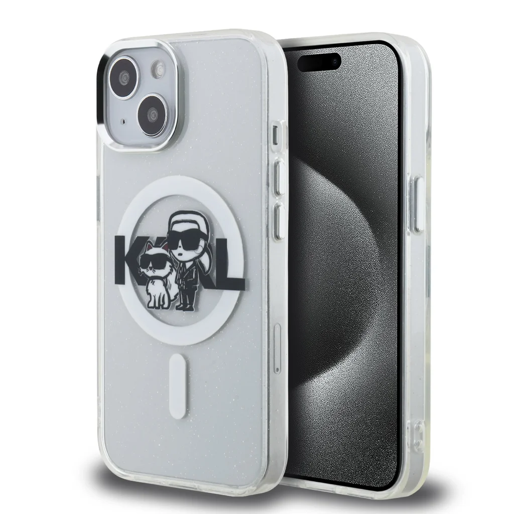 A Karl Lagerfeld IML Glitter Karl and Choupette Sketch MagSafe hátlap a tökéletes kiegészítő a telefonodhoz és az öltözetedhez, amely egyesíti a funkcionalitást és a stílust egyben.