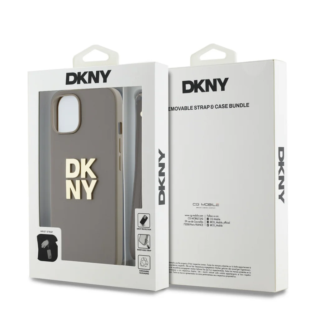 Bemutatjuk a DKNY PU bőrből készült logós csuklópántos tokot iPhone 15-höz - a tökéletes tok a telefonod számára, amely egy levehető csuklópánttal rendelkezik.