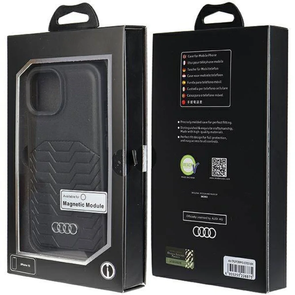 iPhone 15 Fekete Audi szintetikus bőr MagSafe Eredeti tok
