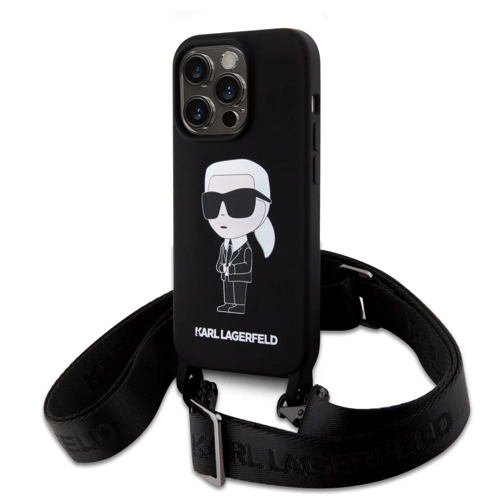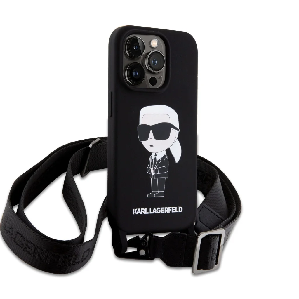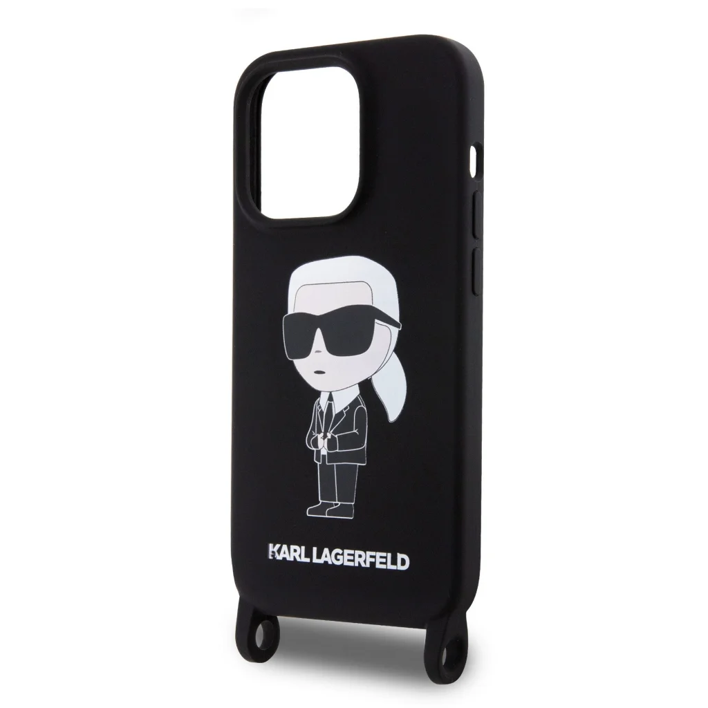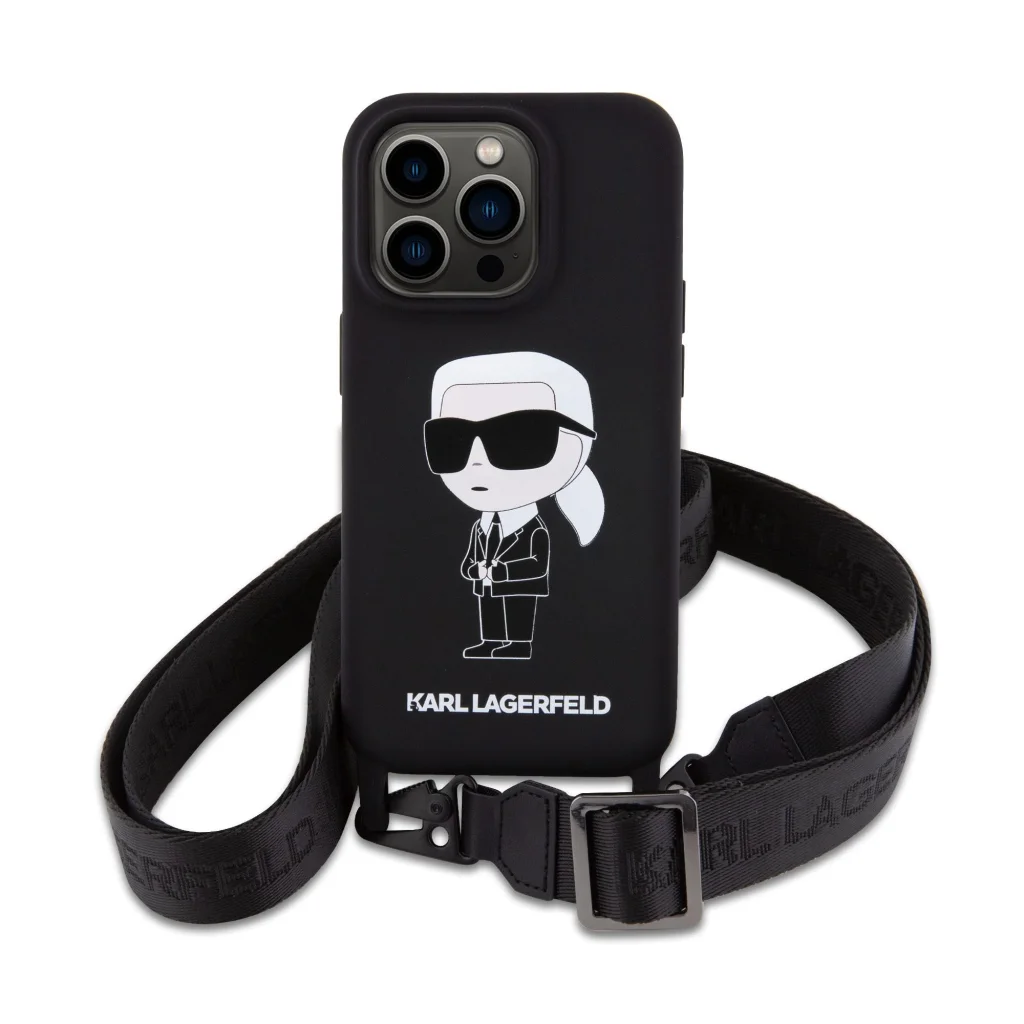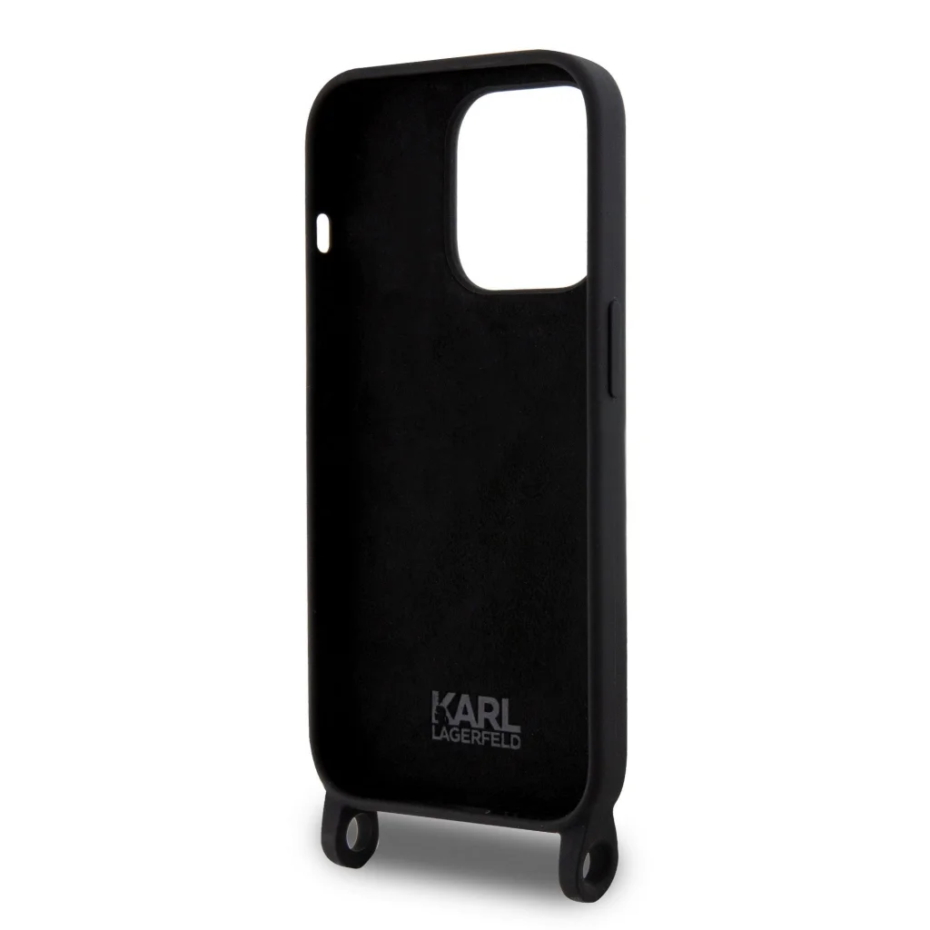 iPhone 15 Fekete Karl Lagerfeld Liquid Silicone Crossbody Ikonik tok (KLHCP15SSCBSKNK)