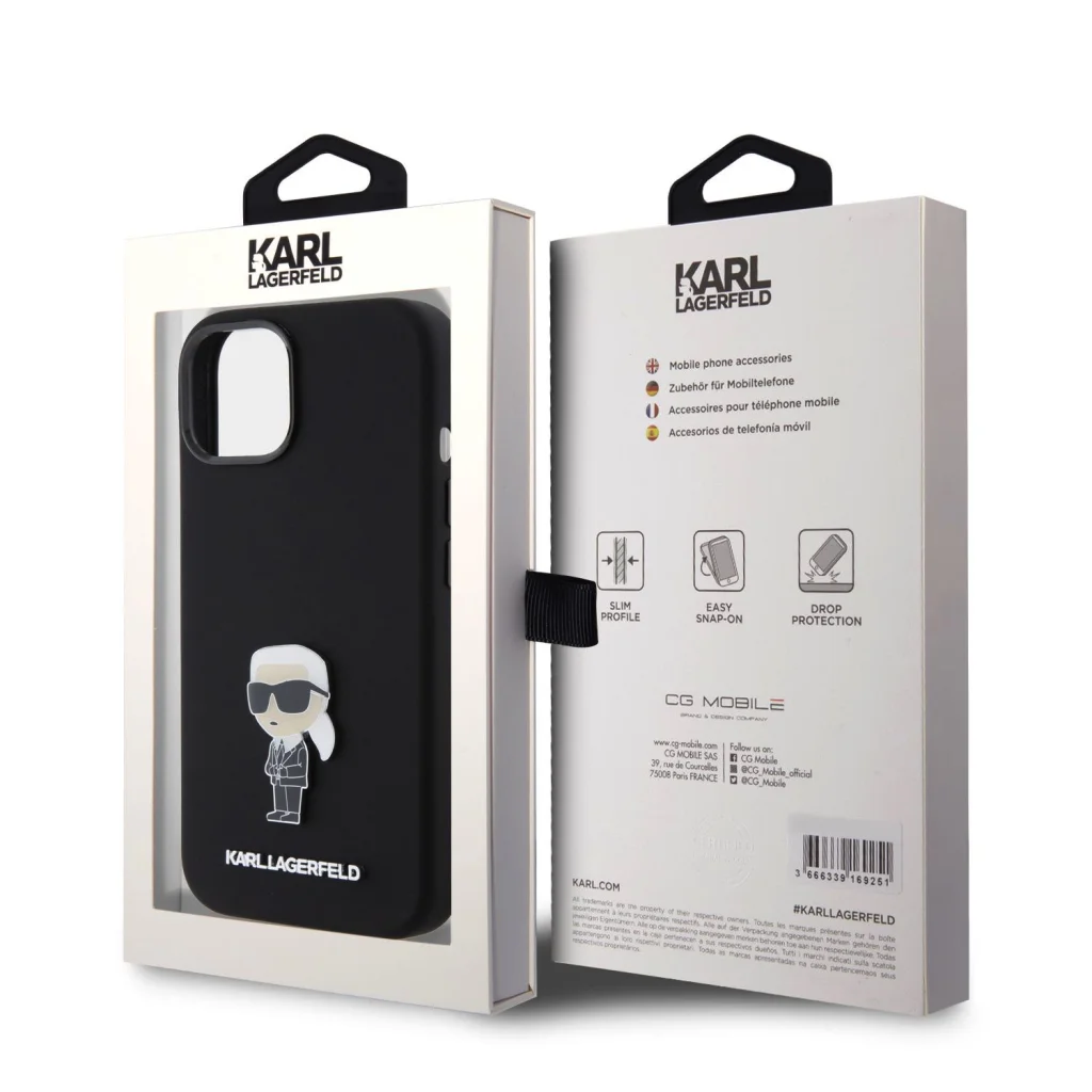 Az elegáns fém Ikonik logó a Karl Lagerfeld felirattal a tok hátulján luxus megjelenést kölcsönöz ennek a kiegészítőnek, és az öltözéked szerves részévé válik.
