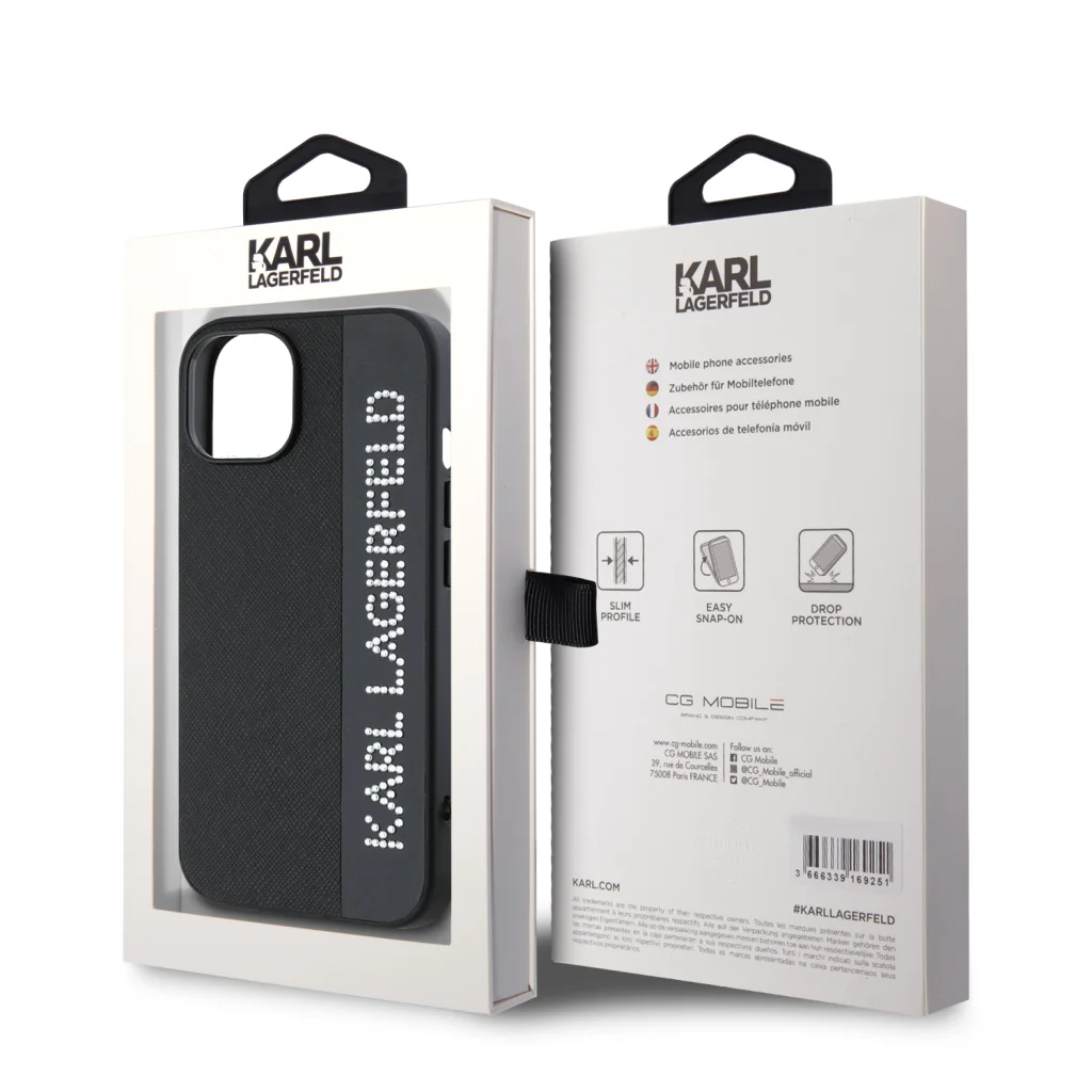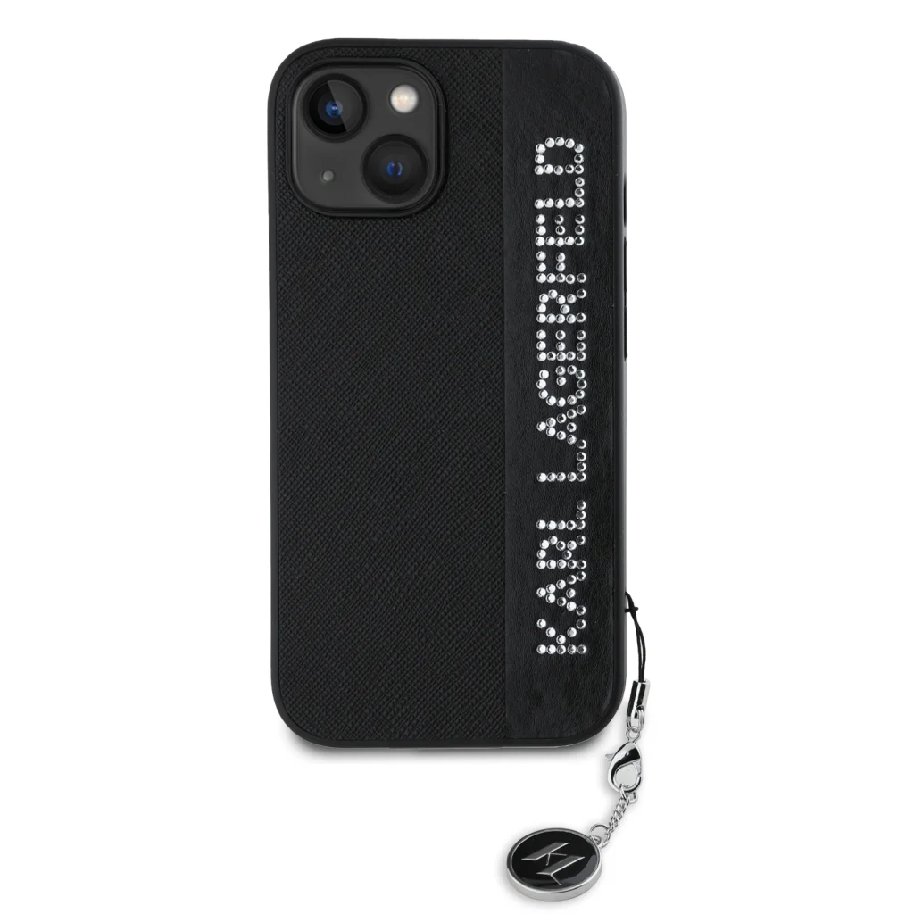 iPhone 15 fekete Karl Lagerfeld PU Saffiano Rhinestone Charm tok