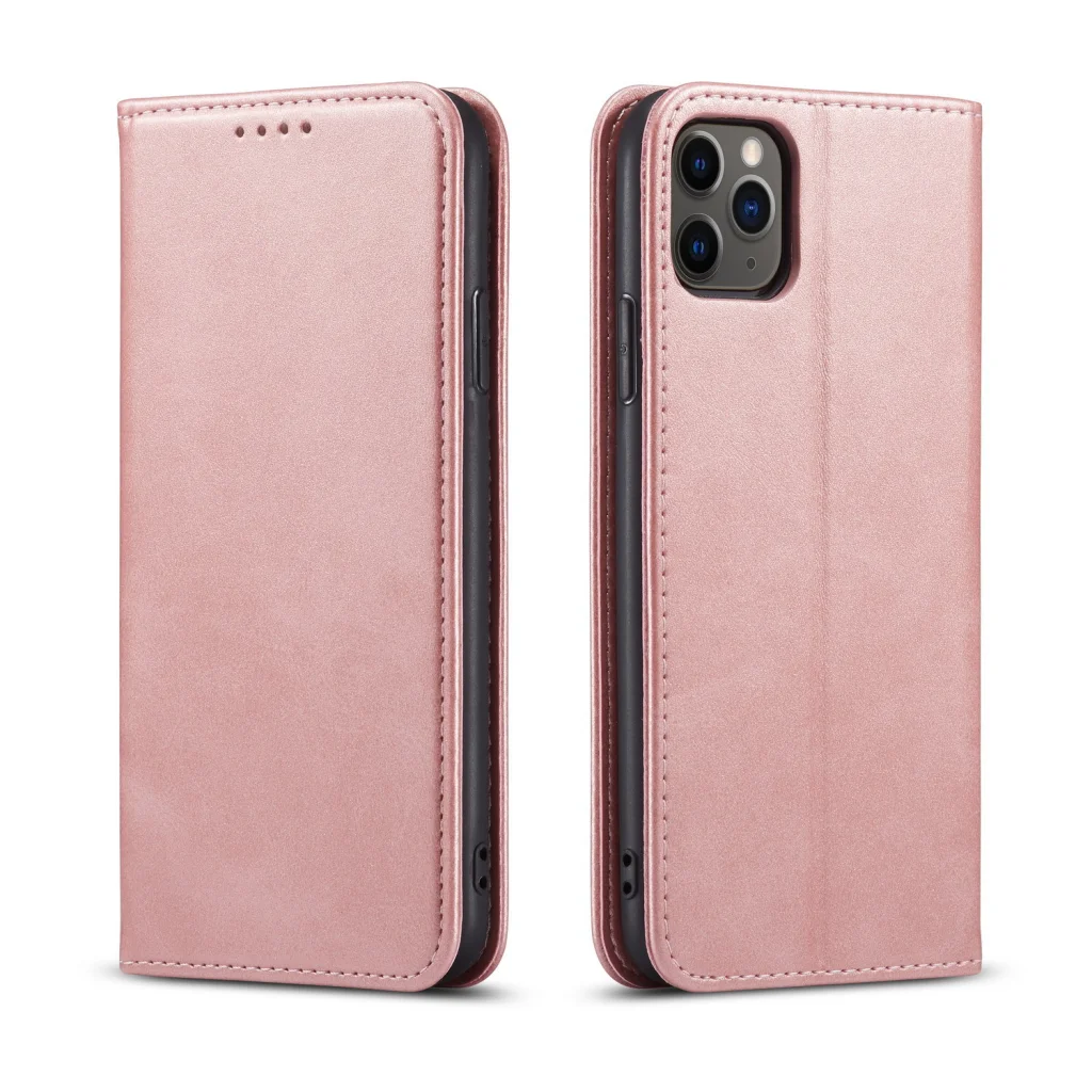 iPhone 15 Plus mágneses PU bőr fliptok kártyatartóval pánt nélküli rózsaszín Alphajack