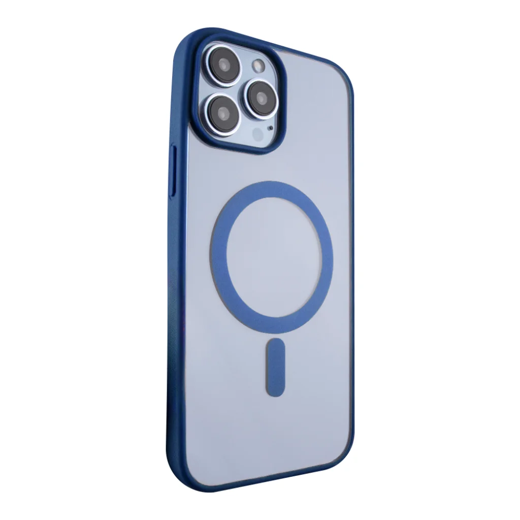 iPhone 15 Plus MagSafe kompatibilis átlátszó TPU tok sötétkék kerettel Alphajack