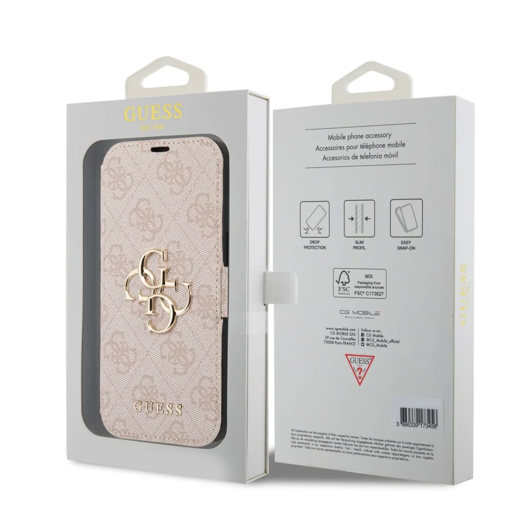 A fém 4G logó Guess írással az előlapon prémium megjelenést kölcsönöz a toknak.