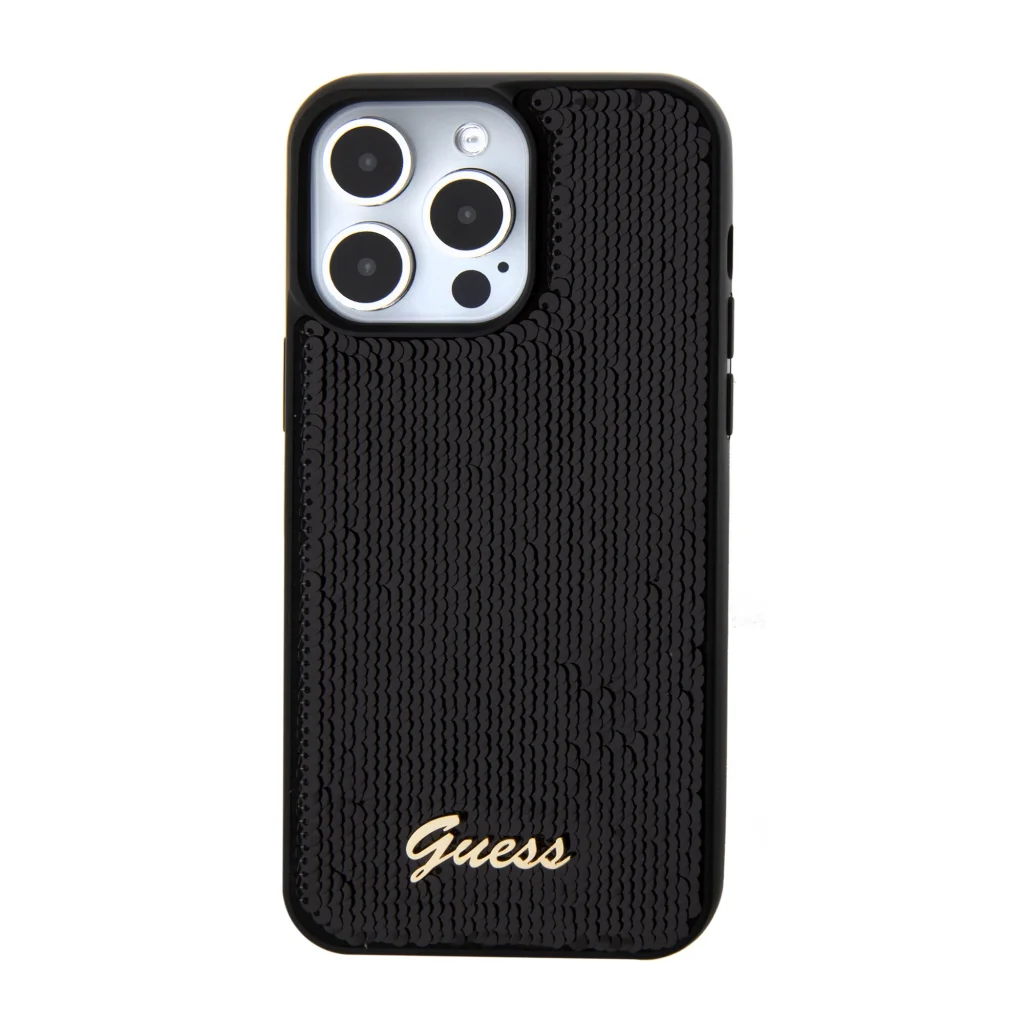 Guess Sequin Script Logo – prémium tok egyedi flitter dizájnnal, amely szokatlan és kivételes megjelenést kölcsönöz telefonjának.