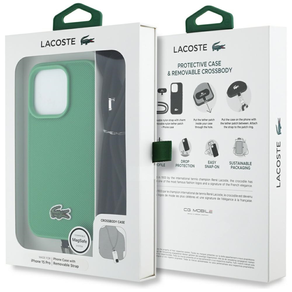 A csomagban található egy kényelmes zsinór, amely nemcsak praktikus kiegészítő, de hangsúlyozza egyedi stílusodat. A tok a Lacoste márka licencével készül. A termék kemény héjú típusa TPU / PC anyagból készült, és kompatibilis az iPhone 15 Pro 6.1"-os készülékkel.