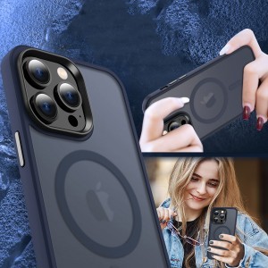 iPhone 15 Pro MagSafe-kompatibilis áttetsző matt tok kék Alphajack