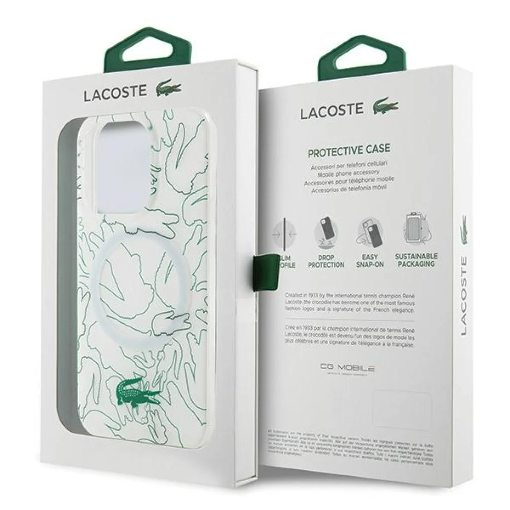 A Lacoste Double Layer Repeat tok praktikus kiegészítő az iPhone-odhoz, amely kombinálja a védelmet a kivételes dizájnnal, amelyet az ikonikus Lacoste krokodil logó finom kontúrjai inspirálnak. Ez a divatos érintés egyedi megjelenést kölcsönöz a telefonodnak, kiemelve annak eleganciáját. A folyamatos Lacoste logó motívumok egyedi mintát hoznak létre, amely kiemelkedik a tömegből.
