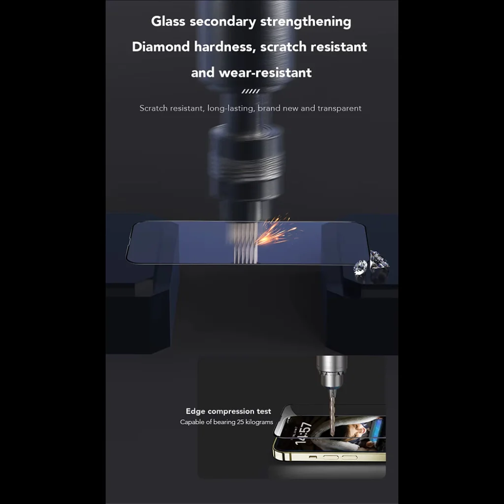 Az ANANK képernyővédő üvegfólia másodlagos üvegerősítéssel és gyémánt keménységű felülettel büszkélkedhet, ami kivételes karc- és kopásállóságot biztosít. Hosszú élettartamú, újszerű és tökéletesen átlátszó marad még intenzív használat mellett is. A megerősített élek különleges védelmet nyújtanak a szélek mentén, ahol a legtöbb ütés éri a telefont. Az él kompressziós tesztek szerint akár 25 kilogramm súlyt is képes ellenállni, garantálva a kiemelkedő tartósságot a mindennapi igénybevétellel szemben.