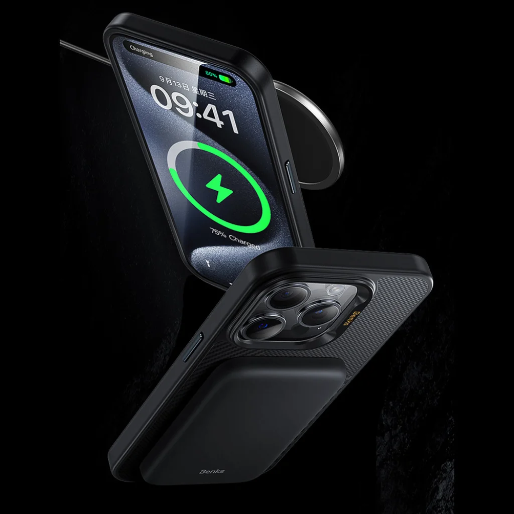 Beépített mágneses rendszer biztosítja a gyors vezeték nélküli töltést és a biztonságos Apple kiegészítő csatlakoztatást
