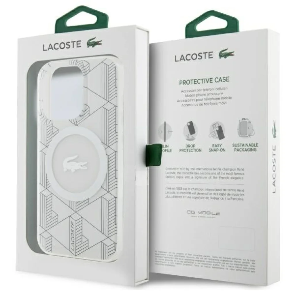 A mágneses gyűrű nem csak biztosítja a MagSafe vezeték nélküli töltő kompatibilitását, lehetővé téve a gyors és kényelmes töltést, hanem biztosítja a készülék stabil megtartását a töltés során, kiküszöbölve a potenciális elmozdulásokat vagy az áramellátás megszakítását. A tok a Lacoste márkalicenc alatt készül.