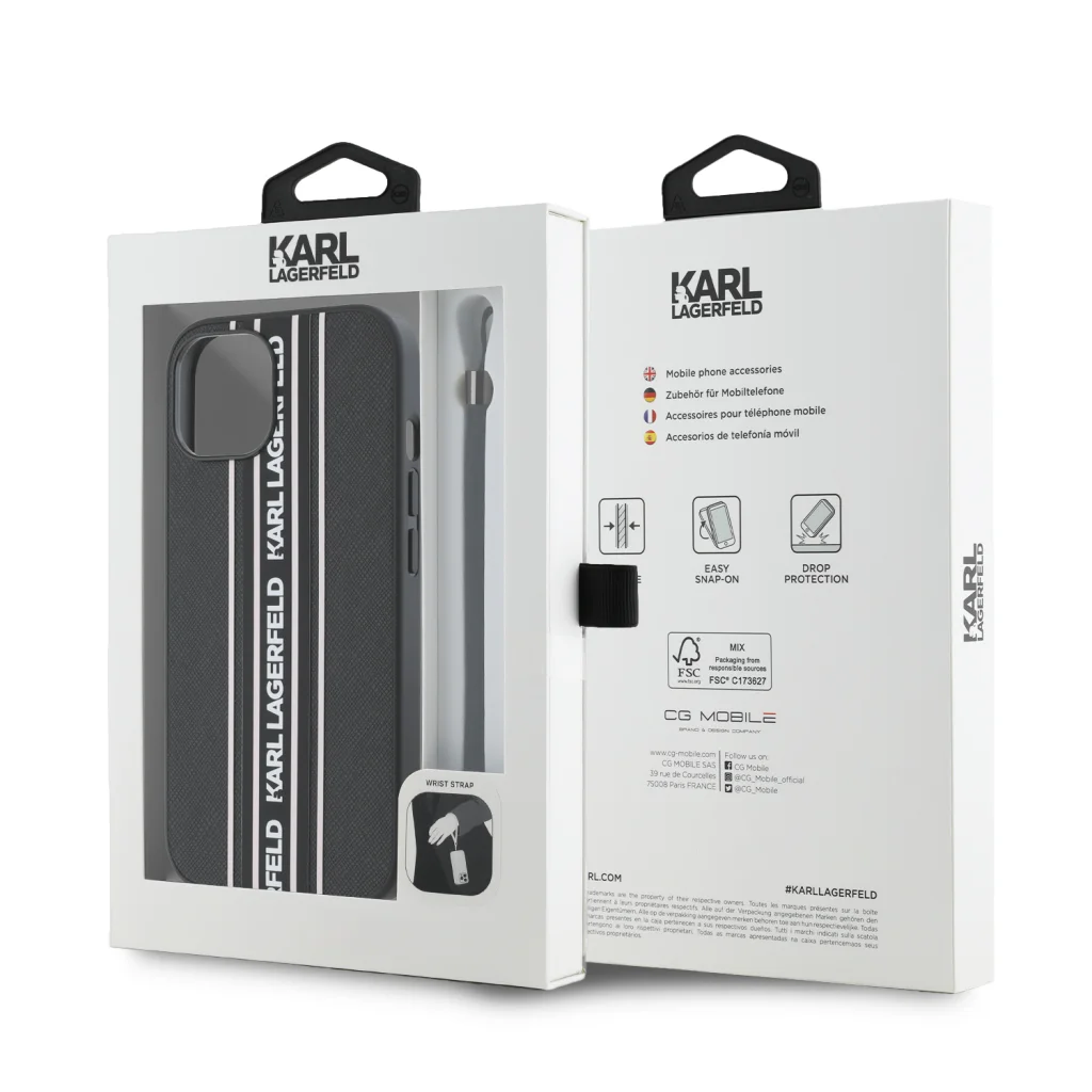 Bemutatjuk a Karl Lagerfeld PU Saffiano Athleisure Stripe és Pánt - egy prémium tok, amely tökéletes védelmet nyújt telefonodnak, miközben lenyűgöző dizájnjával tűnik ki.