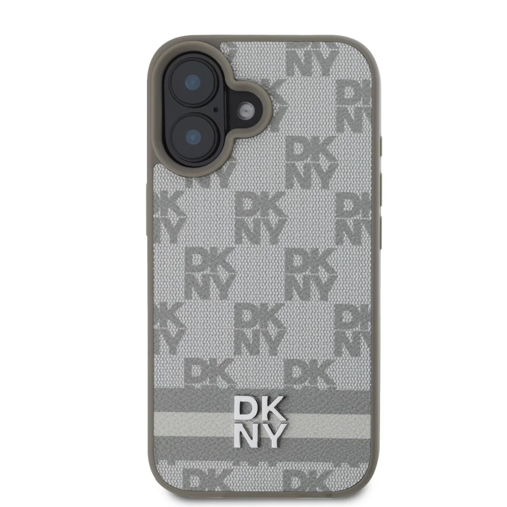 A DKNY PU Bőr Kockás Minta és Csíkos Prémium Hátlap elegáns és jellegzetes mintával rendelkezik, egy fémes DKNY logóval kiegészítve.
