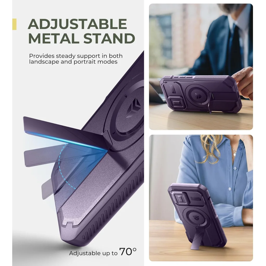 A kiváló minőségű alumíniumötvözetből készült, állítható állvány hihetetlenül strapabíró és hosszú élettartamú. Biztonságosan tartja telefonját fekvő és álló módban egyaránt, akár 70°-os szögben állítható, kiváló stabilitást és kényelmet biztosítva a kéz nélküli filmezéshez, videóhívásokhoz vagy böngészéshez.