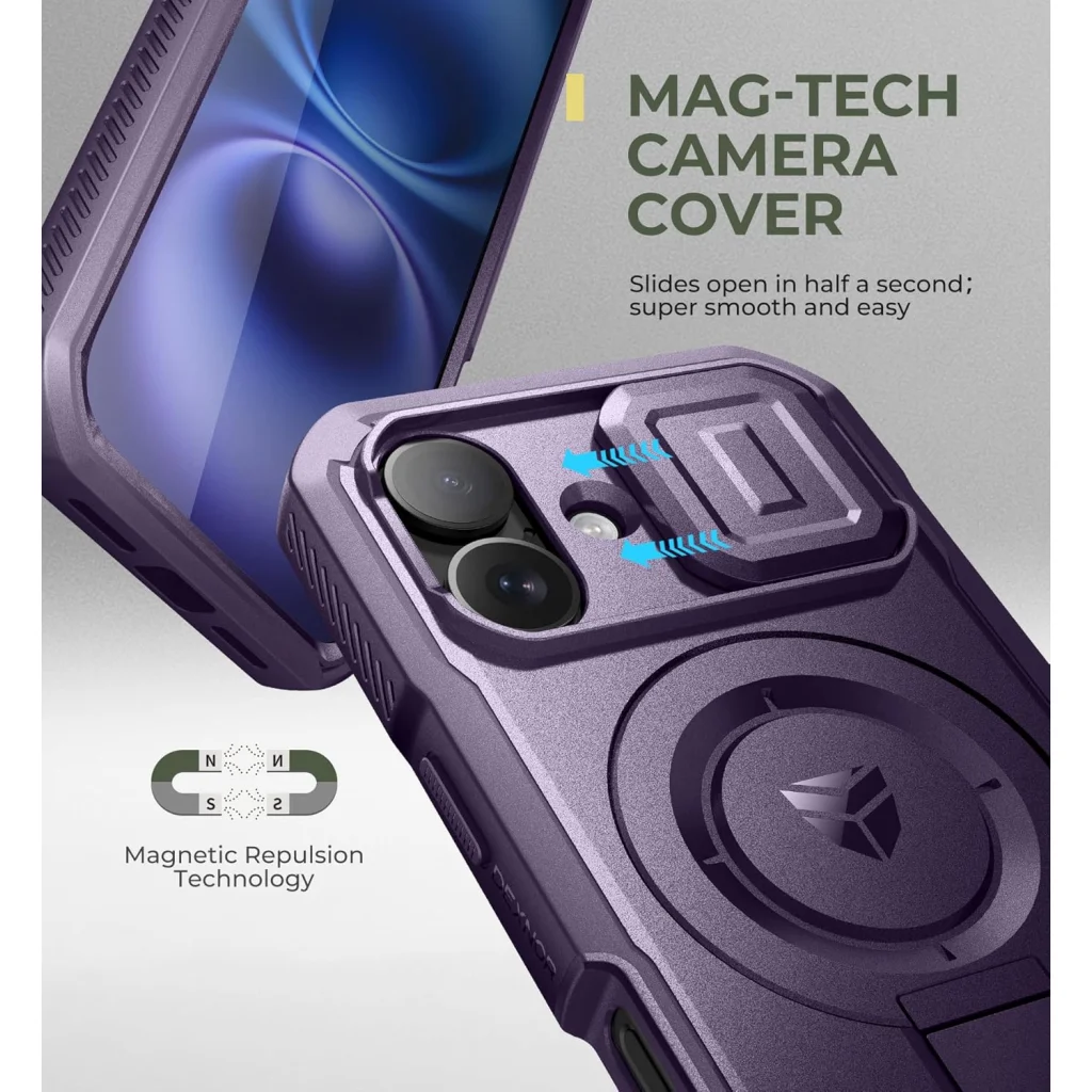 Bemutatjuk az iPhone 16 Dexnor Magsafe tokot – a lila színű, ütésálló védelmet, amely nem csak megóvja telefonját, hanem funkcionalitásában is messze felülmúlja a hagyományos tokokat. A beépített kihajtható állvány, a rendkívül erős MagSafe kompatibilitás és az innovatív kamerafedél révén ez a tok a tökéletes társ minden kalandhoz és a mindennapi használathoz egyaránt.