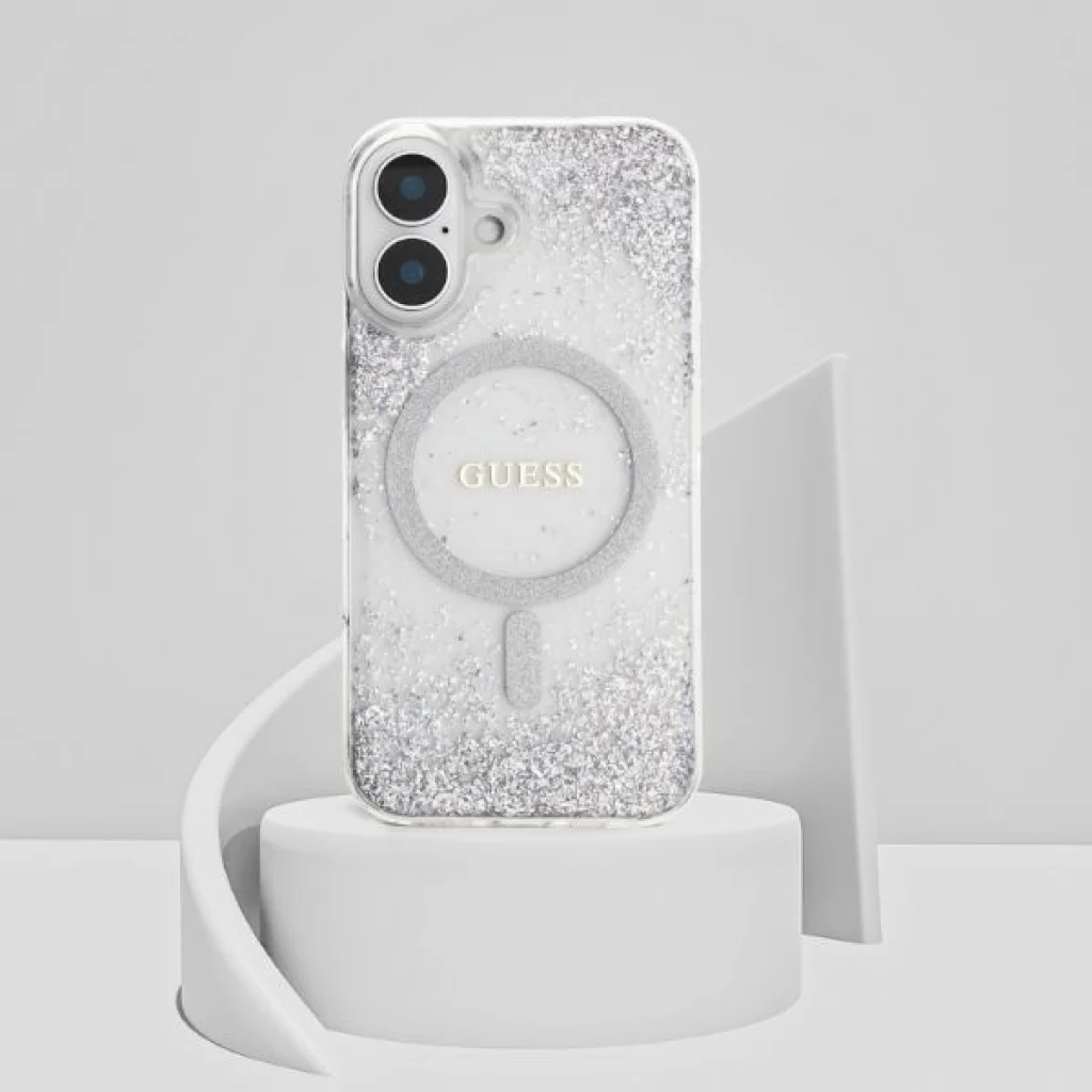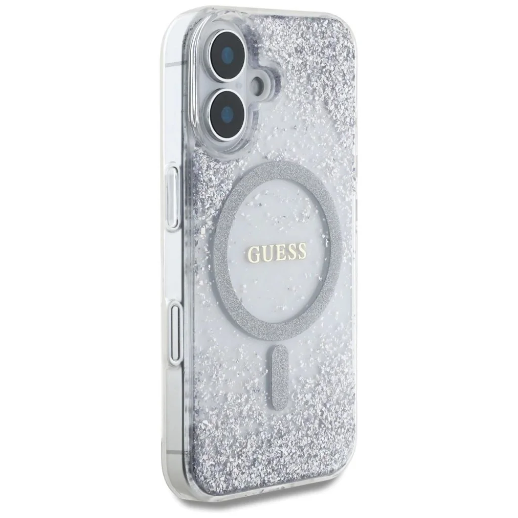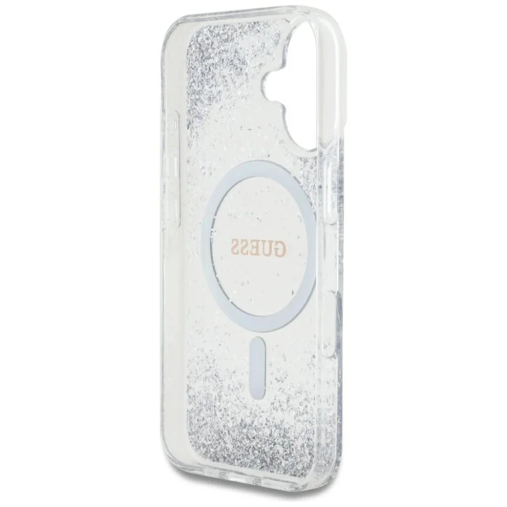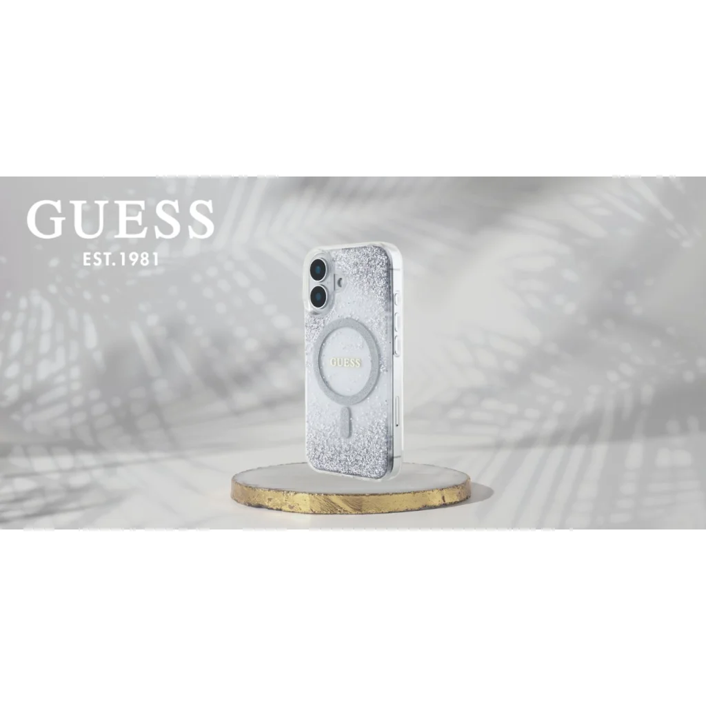 A neves Guess márka exkluzív védőtokja a legmagasabb szintű elegancia és stílus kombinációja. A tok közepén található a Guess logó és egy csillogó MagSafe gyűrű, amely finoman hangsúlyozza a tok presztízsét. Továbbá, csak rázzuk meg finoman a tokot, hogy a csillám részecskék mozgásba kerüljenek, és egyedi ragyogást adjanak az egésznek. Ez a funkcionalitás és az elegáns dizájn tökéletes kombinációja, amely nemcsak hogy megvédi a telefont, de ugyanakkor divatos kiegészítővé is teszi.