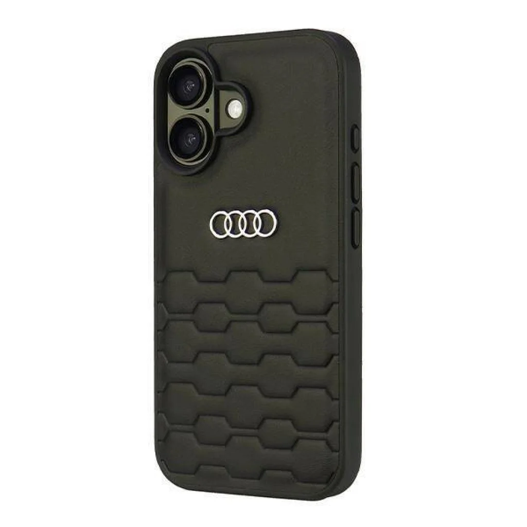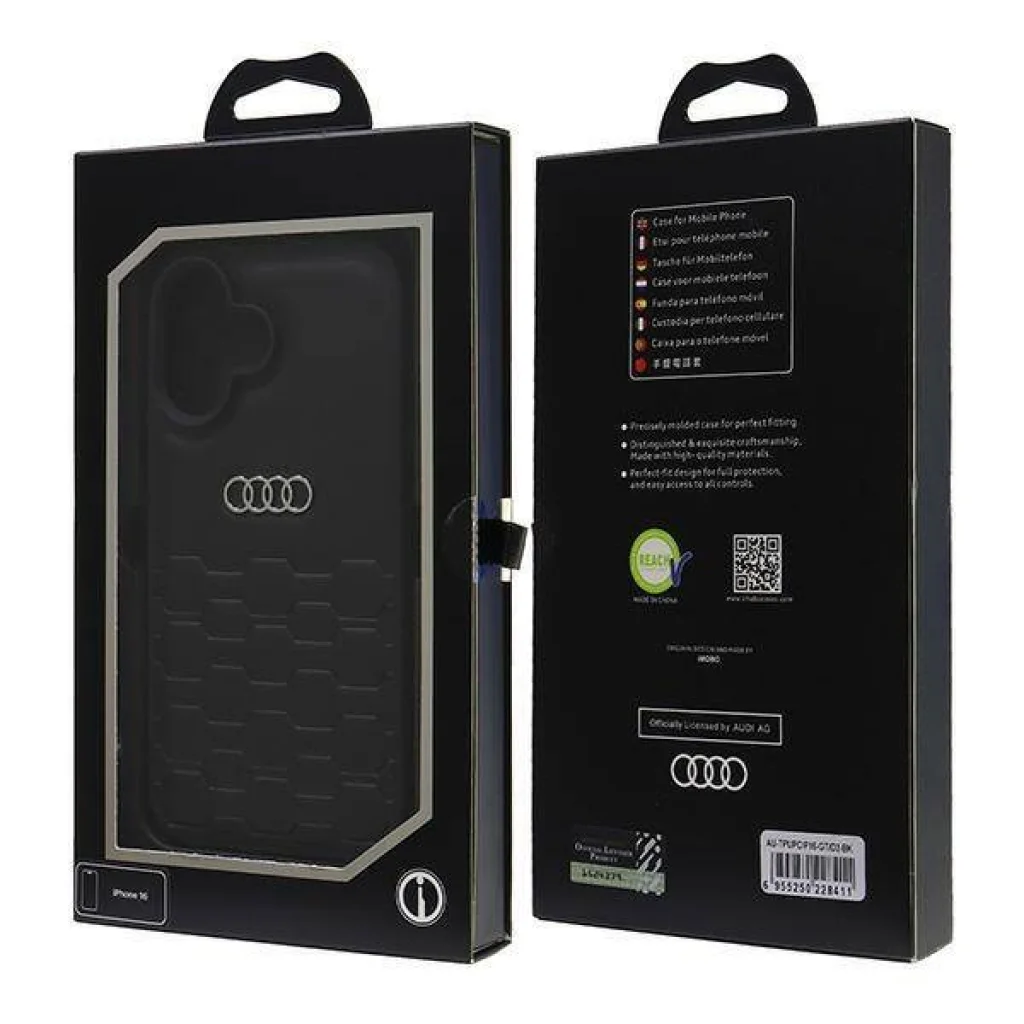 IPHONE 16 Fekete Eredeti Audi szintetikus bőr tok (AU-TPUPCIP16-GT/D2-BK)