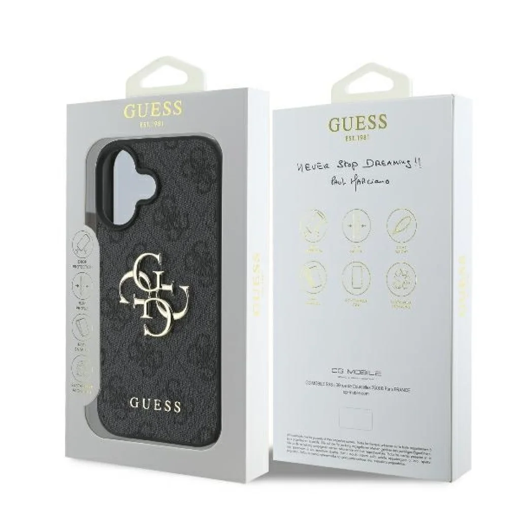 iPhone 16 fekete Eredeti GUESS 4G Nagy Logó Tok GUHCP16S4GMGGR