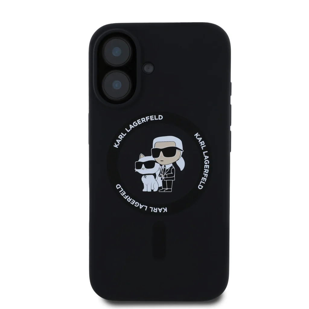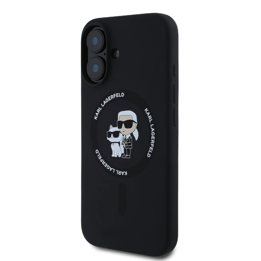 iPhone 16 Fekete Karl Lagerfeld Liquid Silicone Karl and Choupette MagSafe tok
