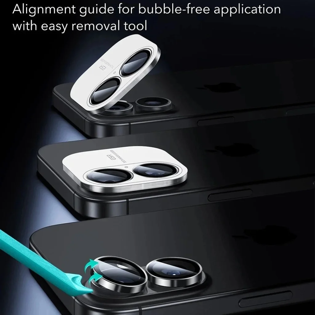 Az egyedi lencsedesign garantálja, hogy az ESR Armorite védők kompatibilisek a telefon tokjainak 99%-ával, így nem kell kompromisszumot kötnie a védelem és a stílus között. Nincs többé aggodalom a tok és a lencsevédő összeillesztése miatt! Ráadásul a csomag tartalmaz egy igazító eszközt, amely buborékmentes felhelyezést tesz lehetővé, valamint egy könnyen eltávolítható eszközt is a problémamentes cseréhez.