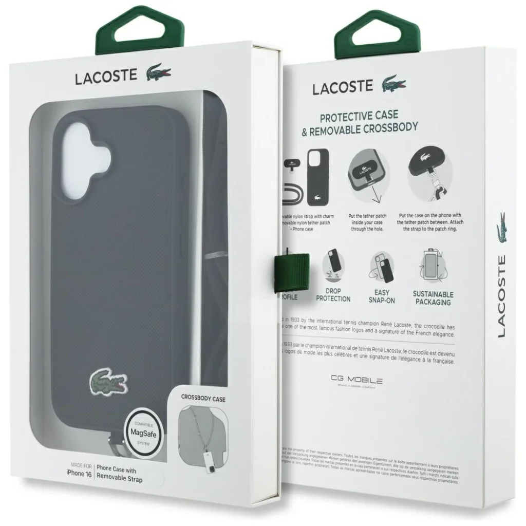 Kényelmes kiegészítő! A szett tartalmaz egy kényelmes pántot, amely nemcsak praktikus kiegészítő, hanem kiemeli egyedi stílusodat is. A tok a Lacoste márkanév alatt készült.