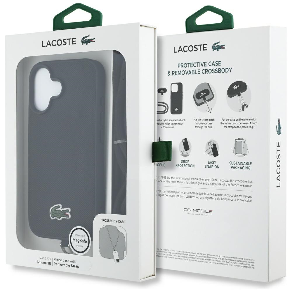 Stílusos kinézet: A tok érdekes textúrájával tűnik ki, amely nem csak vonzza a figyelmet, hanem kellemes tapintási élményt is nyújt. Az enyhén kidolgozott felület révén a tok nemcsak esztétikus, hanem funkcionális is, biztos fogást és kényelmes használatot nyújt. A kollekciót a Lacoste ikonikus krokodil képe díszíti, amely tökéletesen tükrözi a márka szellemét, eleganciát és sportos stílust ötvözve.