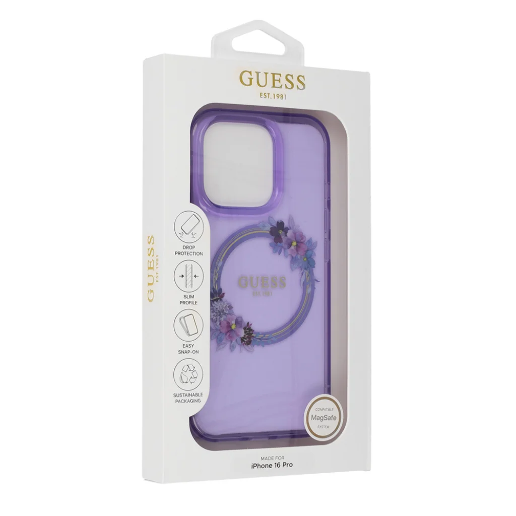 iPhone 16 lila Eredeti GUESS IML Flowers Wreath Magsafe GUHMP16SHFWFCU tok