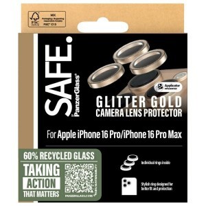 iPhone 16 Pro / 16 Pro Max lencsevédő üvegfólia csillámos arany
