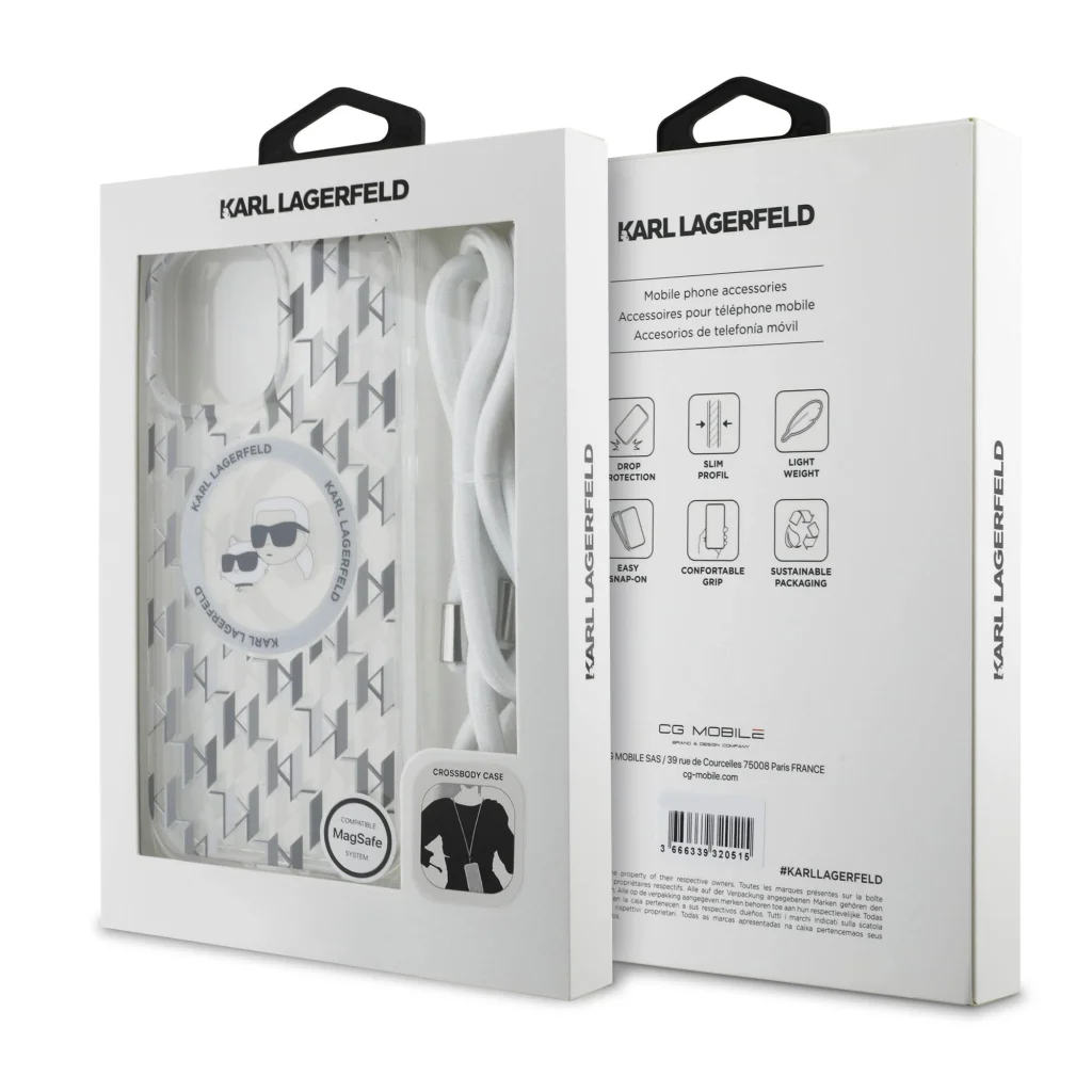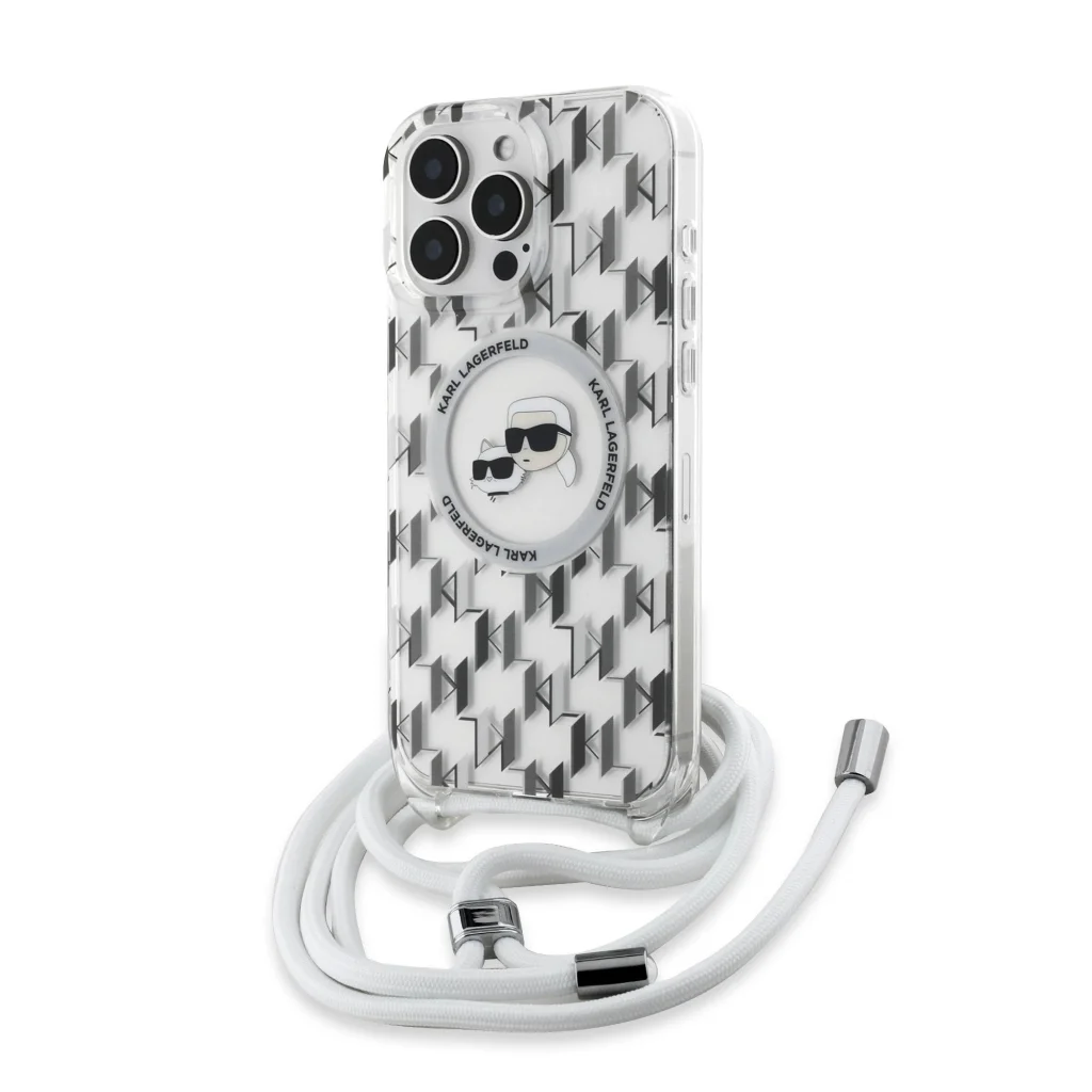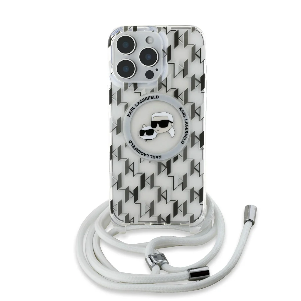 Az exkluzív Karl Lagerfeld IML Monogram Crossbody K&CH Heads MagSafe tokkal nemcsak elegáns védelmet biztosíthat telefonjának, hanem egy praktikus keresztpántot is kap.
