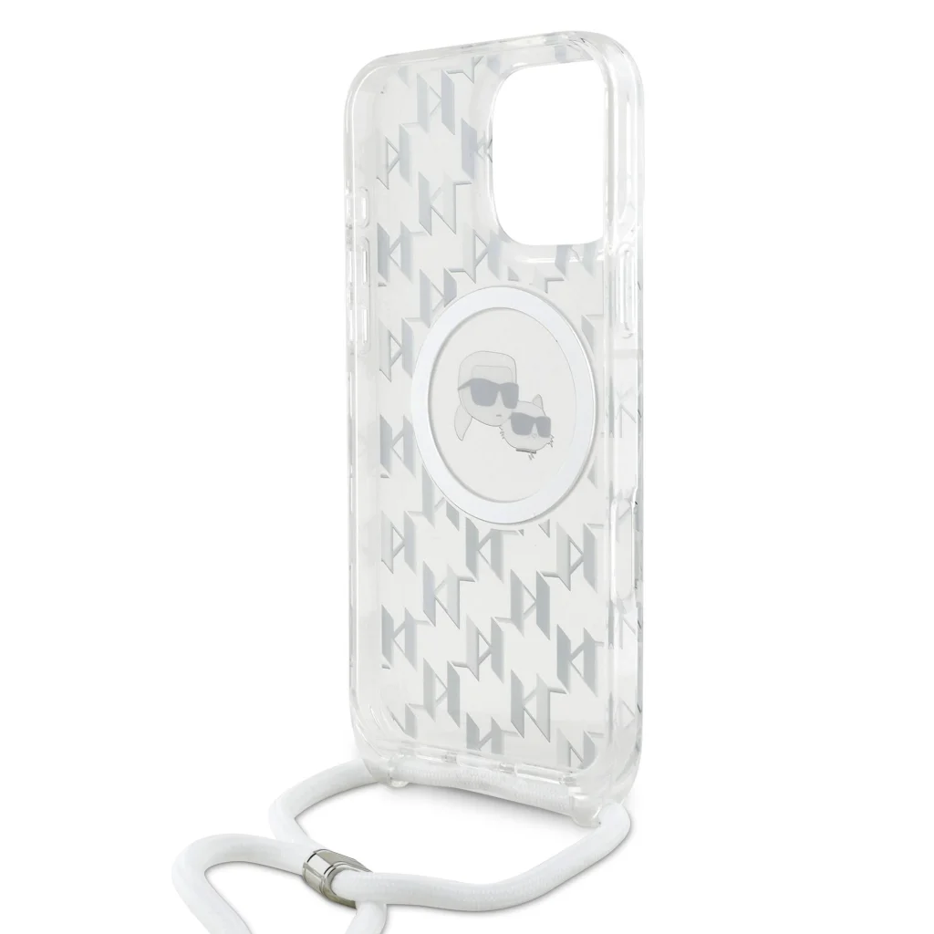 iPhone 16 Pro átlátszó Karl Lagerfeld IML Monogram Crossbody K&CH Heads MagSafe tok