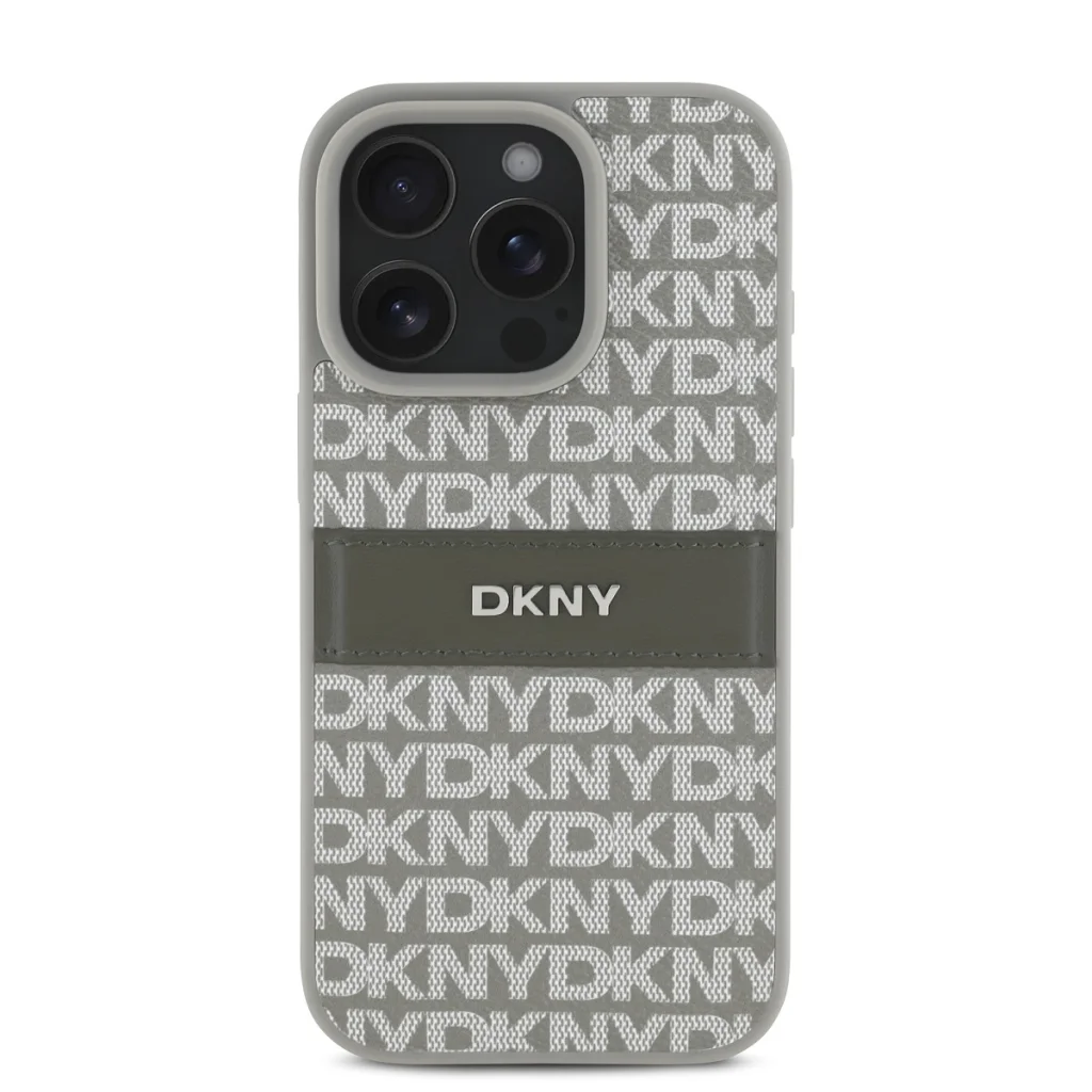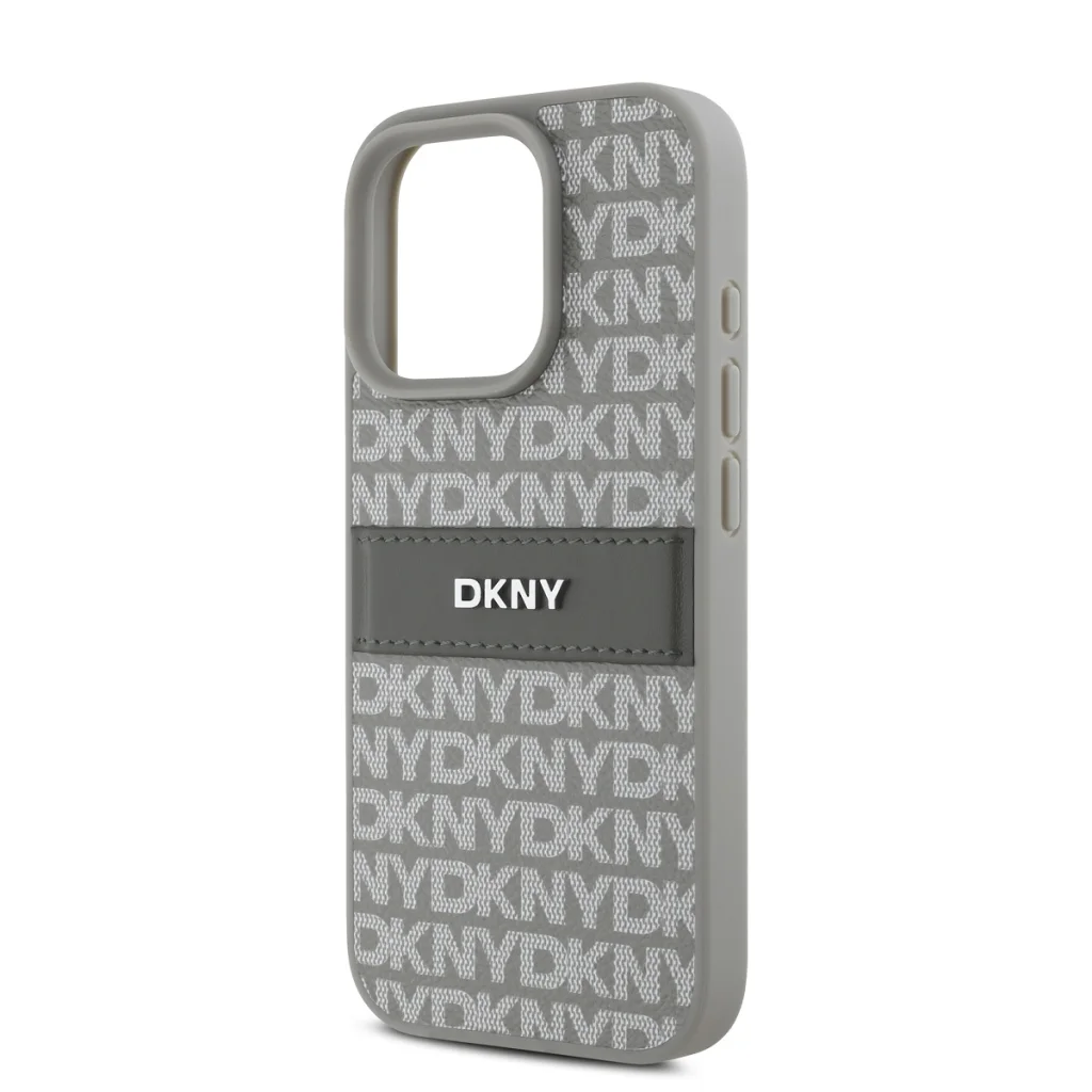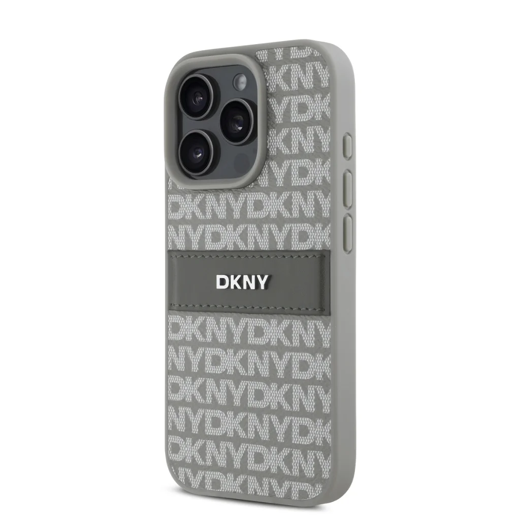 A DKNY PU Bőr Utánzatmintás Tonális Csíkos Tok egy elegáns és jellegzetes mintával rendelkezik, amelyet egy fémes DKNY logó egészít ki.