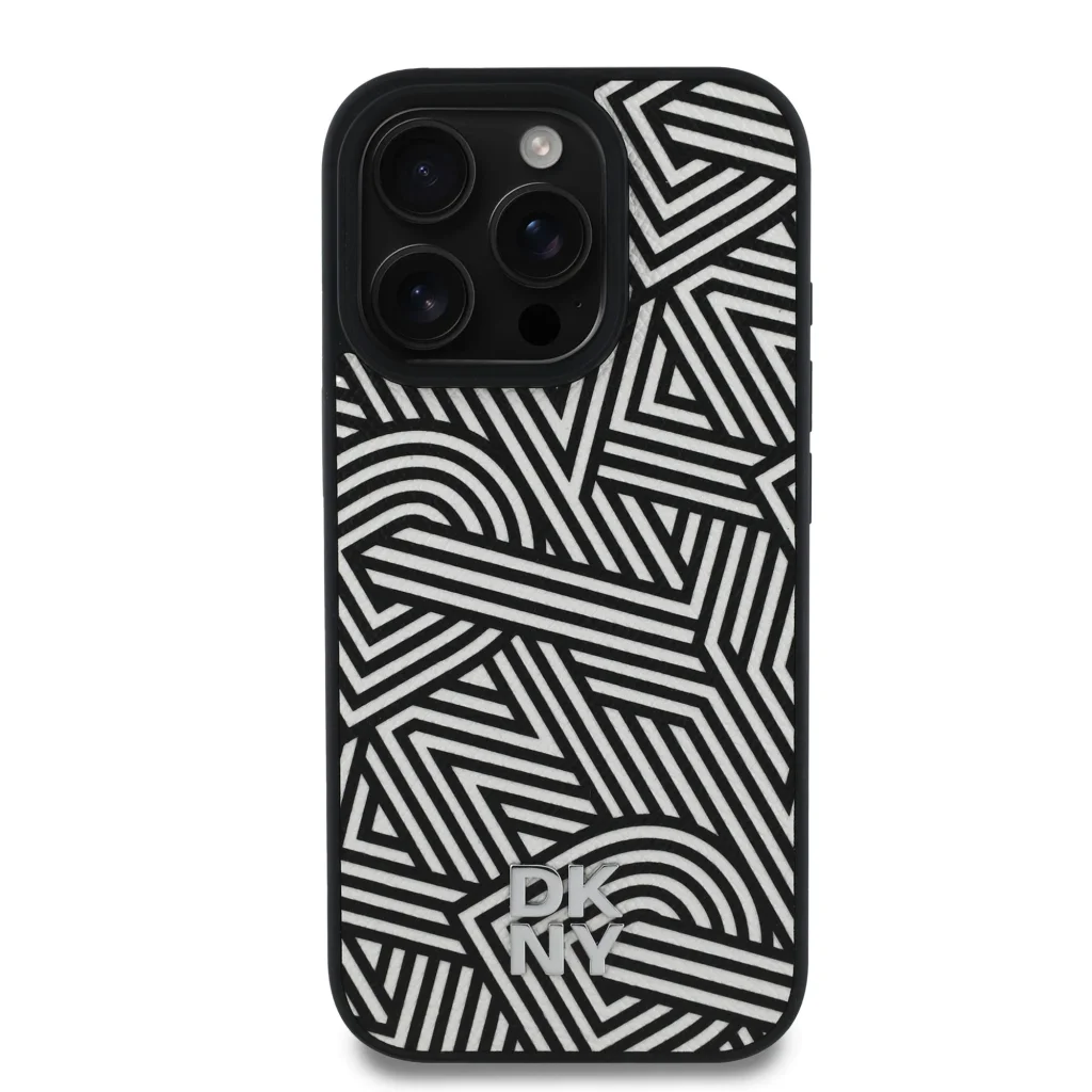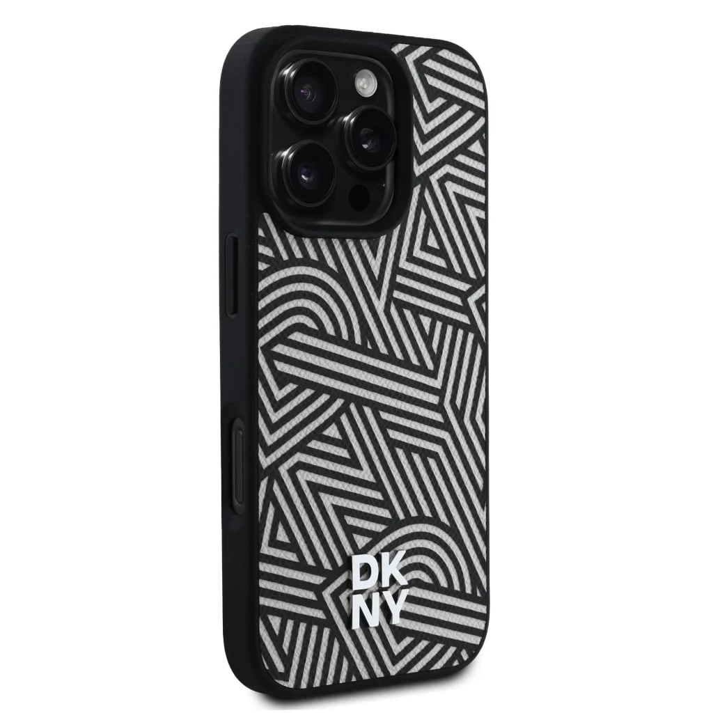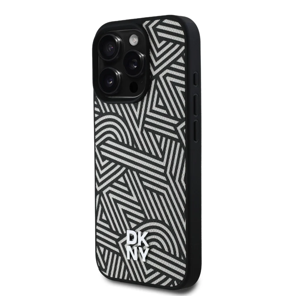A DKNY PU Bőr Crosswalk Minta Magsafe egy ismétlődő "DKNY" logóból áll, amely elegáns grafikai hatást kelt.