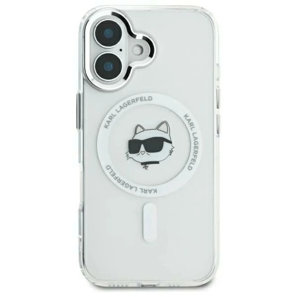 A szépség a részletekben rejlik, és ennek a toknek a minimalista dizájnja tökéletes példa erre – eleganciával és kifinomultsággal kápráztat el. A tok kialakítása alumínium betétekkel van díszítve a kamera kerete és az oldalsó gombok körül. A kollekció központi eleme a legendás tervező szeretett cicáját, Choupette-et ábrázoló nyomat, amely a mágneses gyűrű közepén helyezkedik el.