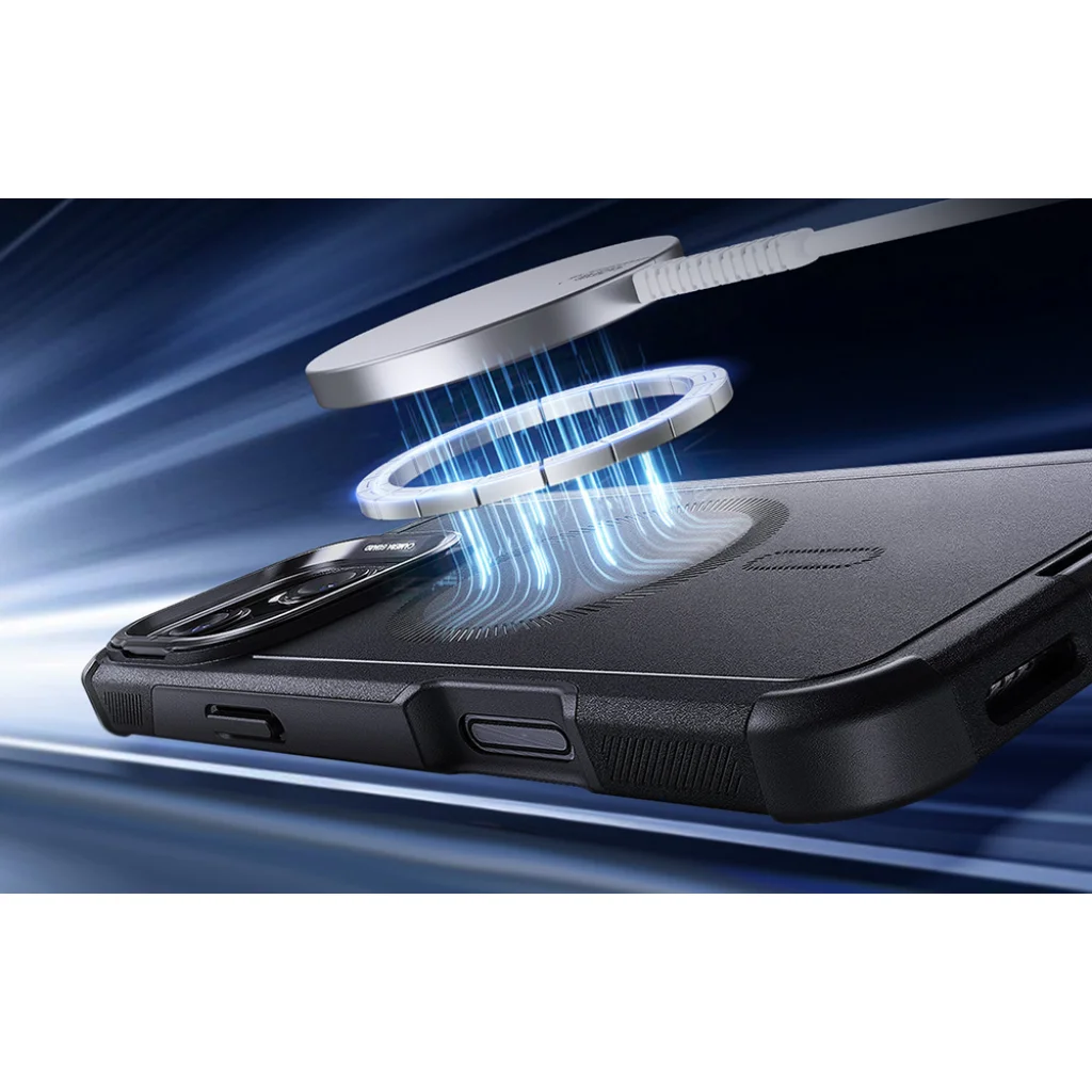 A tok könnyű, vékony és kényelmes fogást biztosít. A háromrétegű kialakítás – amely Poron ütéselnyelő bélést, TPU réteget az ütésvédelemhez és karcálló kemény PC tokot tartalmaz – hatékonyan védi készülékedet a károsodástól.