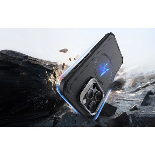 Az ESR Cyber Erős (HaloLock) tok állvánnyal rendelkezik, kifejezetten iPhone 16 Pro-hoz tervezve (fekete). Az ESR Cyber Erős (HaloLock) tok megbízható védelmet nyújt, amely megfelel a katonai MIL-STD-810H 516.8 szabványnak. Az eszköz akár 7 méteres zuhanásokat is kibír. A termék továbbá állvánnyal és mágneses kiegészítőkkel való kompatibilitással rendelkezik.