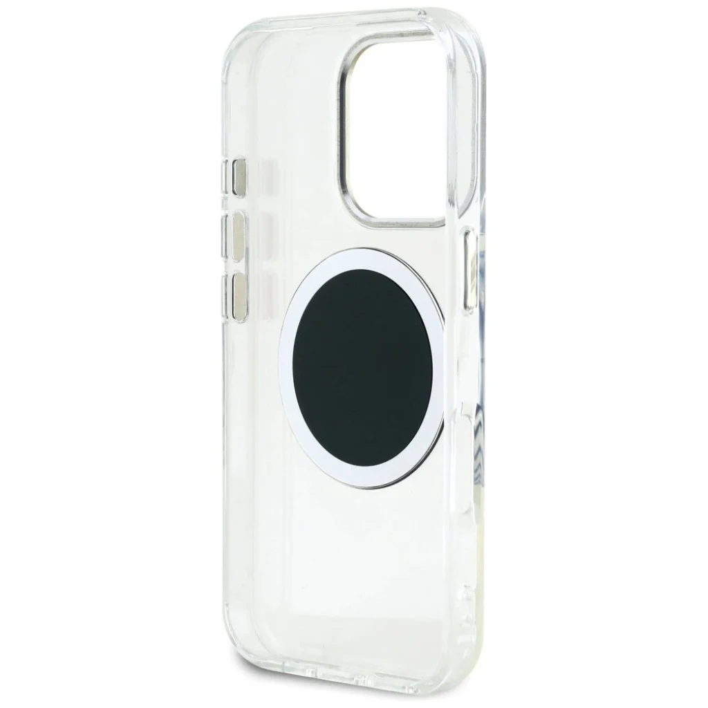 A Guess IML fém színes kör klasszikus logo MagSafe tok egy exkluzív védőtok kollekció, amely ötvözi a kivételes funkcionalitást és a stílusos, egyedi dizájnt. Ezt a kollekciót azoknak tervezték, akik nemcsak telefonjuk biztonságát, hanem elegáns megjelenését is értékelik. Különleges megjelenés és kivételes minőség: A neves Guess márka exkluzív védőtokja az elegancia és a stílus legmagasabb szintű kombinációja. A tok kiváló minőségű polikarbonátból és poliuretánból készült. Felülete jellegzetes MagSafe gyűrűvel van díszítve. A tok közepén található a Guess logó, amely finoman hangsúlyozza a tok presztízsét. Ez a funkcionalitás és az elegáns dizájn tökéletes kombinációja, amely a telefonját nemcsak jól védi, hanem divatos kiegészítővé is teszi. Szilárd szerkezet és tökéletes illeszkedés: A gondosan kiválasztott méreteknek köszönhetően a tok hatékonyan tompítja az eséseket, miközben teljes hozzáférést biztosít a portokhoz és a gombokhoz. A tok oldalai elég rugalmasak, hogy lehetővé tegyék a könnyű fel- és leszerelést, de mindenekelőtt tökéletesen védik a készülék keretét az ütésektől vagy potenciális károktól. A kissé megemelt külső élek megóvják a telefon képernyőjét a sérülésektől, míg a kamera lencséje körüli megemelt külső élek megakadályozzák az optikák eltörését vagy karcolódását. Töltsd a telefonod vezeték nélkül! A tok mágneses gyűrűvel van felszerelve, amely kompatibilis a MagSafe vezeték nélküli töltővel, biztosítva a gyors és egyszerű töltést. A tokba épített mágnesek tökéletesen igazodnak a felhasználó telefonjához, és biztosítják az eszköz erős tapadását a MagSafe töltőhöz. A tok a Guess márka licence alapján készült. Technikai adatok Kollekció: Guess IML Fém Színes Kör Klasszikus Logo MagSafe tok Típus: Kemény tok Anyag: TPU/PC Szín: Fekete Kompatibilitás: iPhone 16 Pro 6.3"