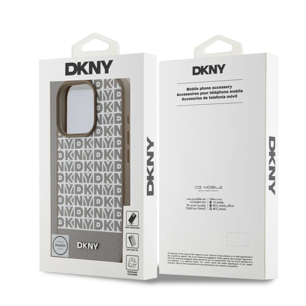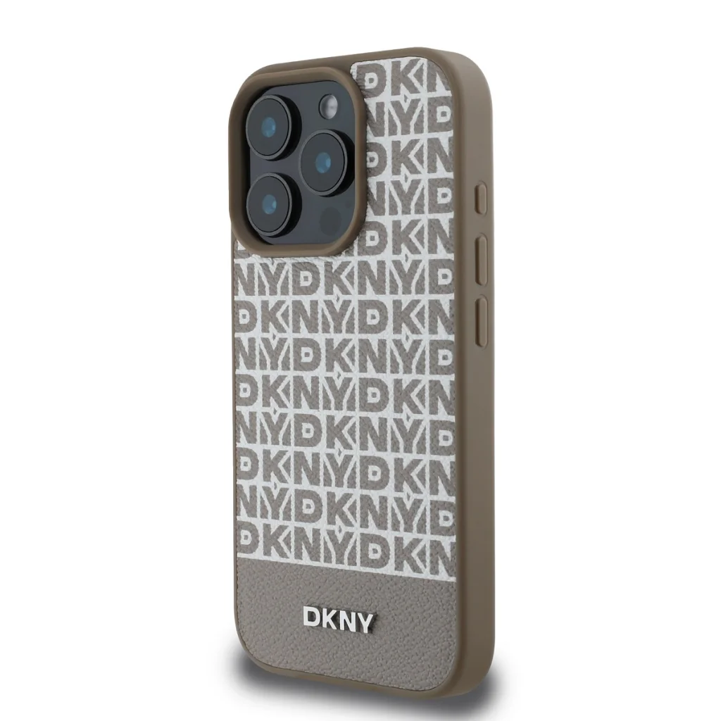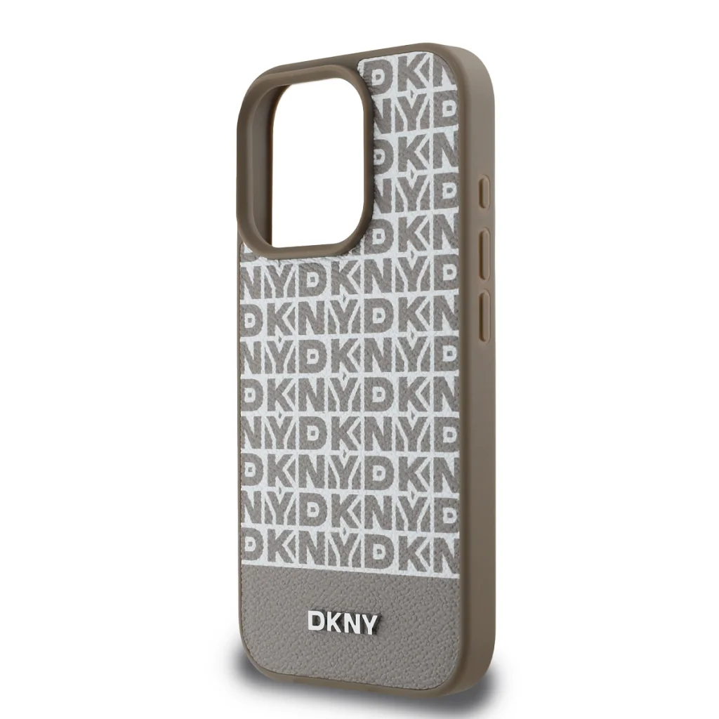 A DKNY PU Bőr Ismétlődő Minta Alsó Csík MagSafe tartalmazza az ismétlődő "DKNY" márkalogót, ami elegáns grafikai hatást kelt.