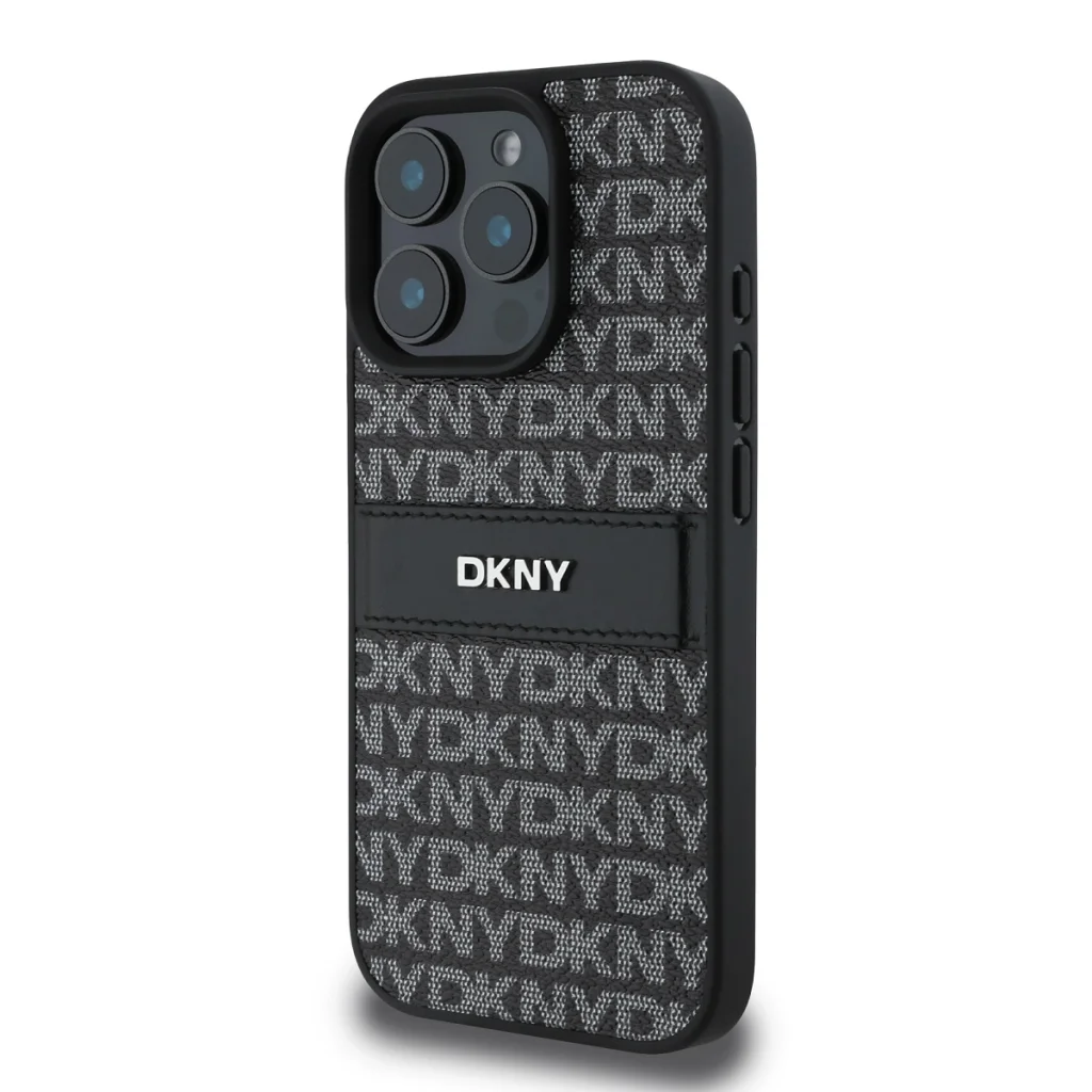 A DKNY PU bőr ismétlődő minta tónusos csíkkal egy elegáns és jellegzetes mintát kínál, kiegészítve a fémes DKNY logóval.