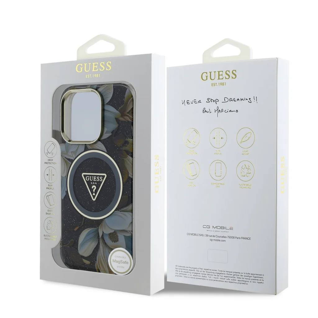 A Guess IML Glitter Magnolia és Triangle Logo MagSafe hátlap remek kiegészítő minden stílus és praktikum kedvelő számára.