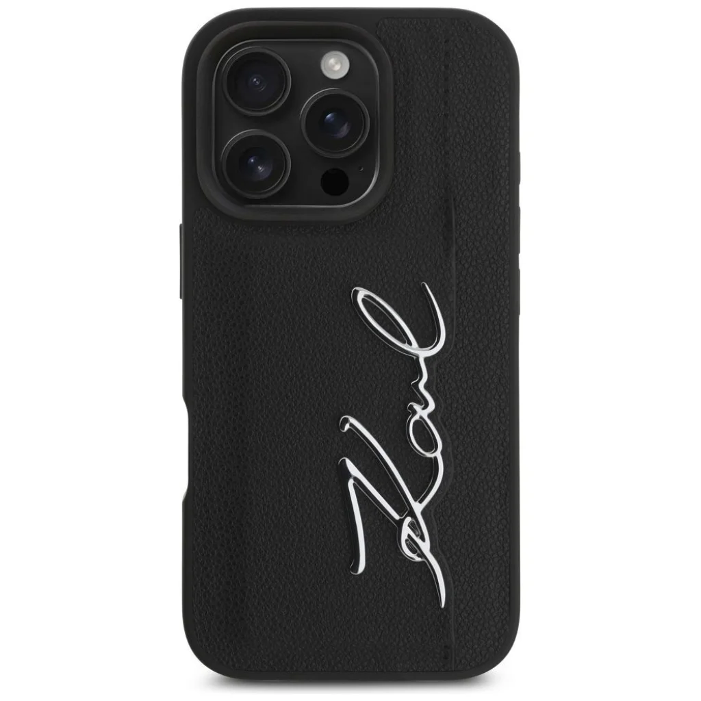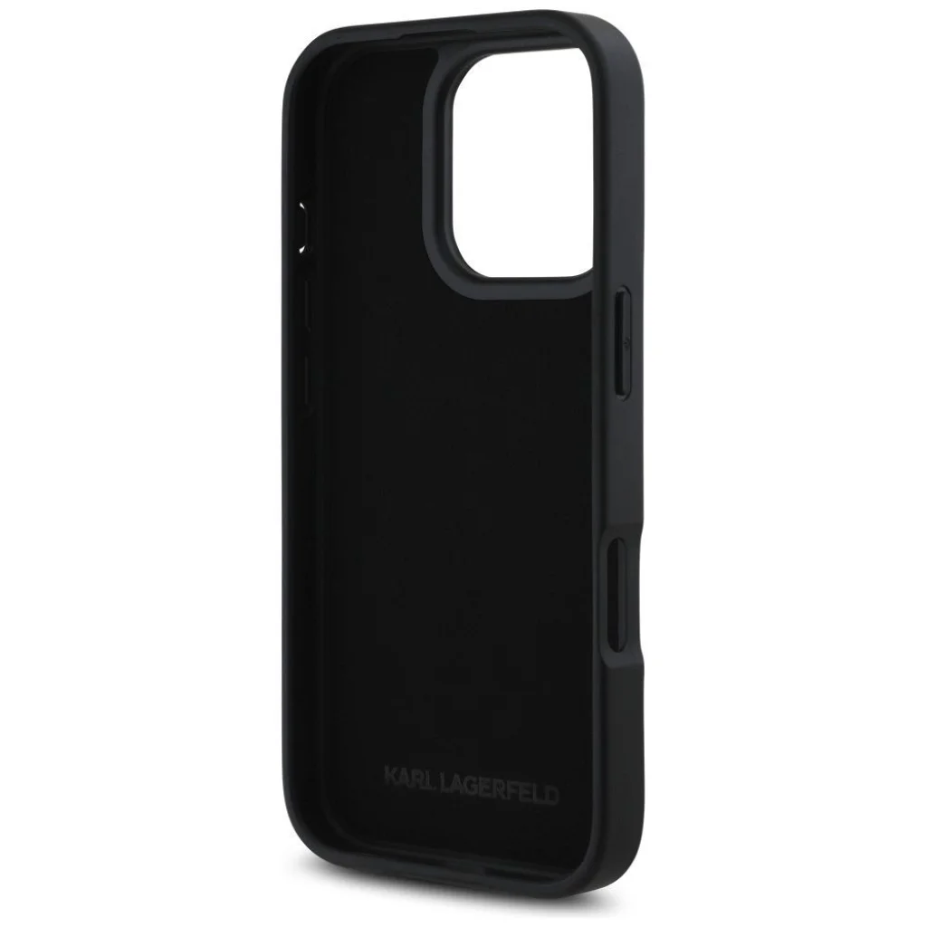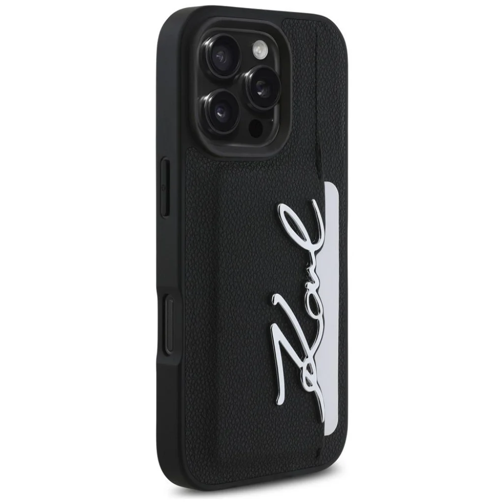 iPhone 16 Pro Max Fekete KARL LAGERFELD tok KLHCP16XPGPVKSK (Szemcsés PU kártyatartós fém aláírás)
