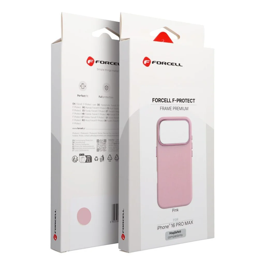 A FORCELL F-PROTECT Frame Premium megfelel a piacon növekvő igényeknek, melyek a prémium védelmet és a magas minőségű kidolgozást kombináló tokokra vonatkoznak. A három elegáns szín (antik fehér, szürke, rózsaszín) tökéletesen illeszkedik a jelenlegi stílusirányzatokhoz, biztosítva a magas értékesítési arányt minden korosztályban. A fém kamera keret, a MagSafe kompatibilitás, és az egyedi folyékony szilikon bevonat a főbb eladási pontok, amelyek meggyőzik a végfelhasználókat ennek az opciónak a választásában. A termék kiemelkedik a polcon és a vásárlók tudatában, pozicionálva az ön kínálatát, mint prémium kiegészítők forrása. Elegancia Találkozik Funkcionalitással A FORCELL F-PROTECT Frame Premium egy védő tok, amelyet azoknak a vásárlóknak terveztek, akik értékelik az esztétikát és a fejlett védelmet. A teljes szerkezet folyékony öntött szilikonnal van bevonva, amely bársonyosan puha tapintású érzetet és kivételes kényelmet nyújt a használat során. Ez a technológia nemcsak gyönyörű megjelenést biztosít—az folyékony szilikon réteg védi a tokot a kopástól, biztosítva a hosszú távú tartósságot a mindennapos használat során. Védelem Kompromisszumok Nélkül A tok fém kerettel rendelkezik a kamera sziget körül, amely hatékonyan védi a telefon legérzékenyebb részét a sérülésektől. Az emelt peremek a kijelző és a kamera körül további védőgátat képeznek esés esetén, míg a megerősített hátlap kemény PC (polikarbonát) anyagból biztosítja az egész szerkezet szerkezeti integritását. Minden gomb fémből készült. A tok belseje puha mikroszálas béléssel van ellátva, amely finoman körülöleli a telefont, megszüntetve a mikro-karcolások kockázatát. MagSafe Technológia - Az Elvárt Funkció A tok teljes mértékben támogatja a MagSafe töltést. Ez garantálja a biztonságos rögzítést és a gyors vezeték nélküli töltést, anélkül, hogy le kellene venni a tokot—a kényelmet, amelyet minden iPhone felhasználó értékelni fog. Könnyű Telepítés és Tartós Használat A közepesen puha PC folyékony szilikonnal bevont szerkezete rugalmasságot biztosít a tok telepítéséhez—a telefon könnyedén belecsúszik, és a tok biztonságosan tartja a készüléket. Ez egy praktikus funkció, amelyet a végfelhasználók azonnal észrevesznek az első találkozás során a termékkel. Specifikáció: Anyag: Közepesen puha PC folyékony öntött szilikonnal bevonva Vezeték nélküli töltés támogatás: Igen MagSafe Támogatás: Igen Felület: Folyékony szilikon puha tapintású Bélés: Puha mikroszálas Kamera Keret: Fém Gombok: Fém Színek: Antik fehér, szürke, rózsaszín