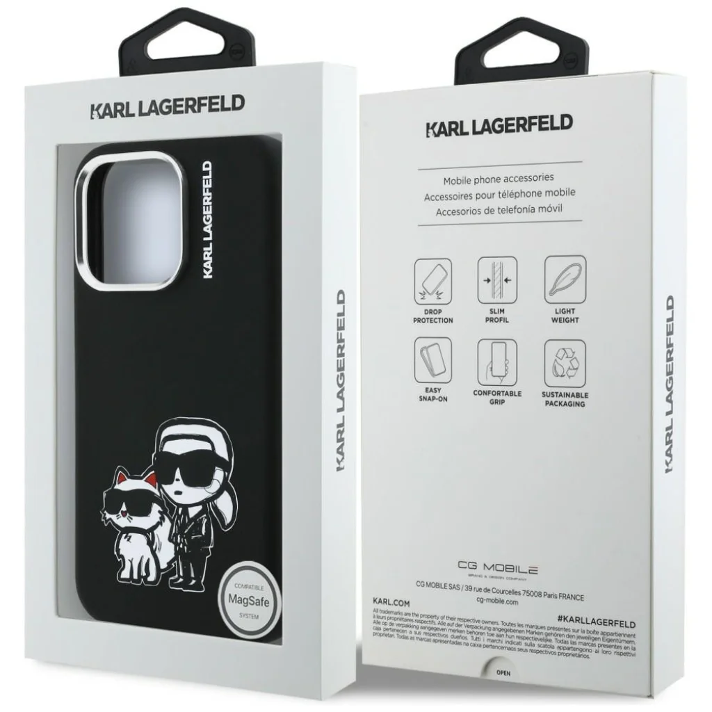 A tok magas minőségű szilikonból készült, amely nemcsak stílusos, de tartós és kopásálló is. Ez a sorozat kiemelkedik a híres macska, Choupette és az ikonikus tervező, Karl Lagerfeld jellegzetes rajzával. A márka logója nemcsak eleganciát kölcsönöz a tokoknak, hanem az autenticitás és kiváló minőség szimbóluma is.