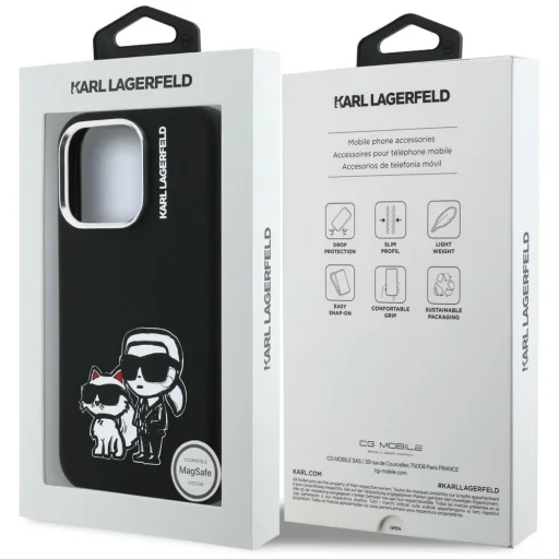 iPhone 16 Pro Max Karl Lagerfeld Szilikon Karl&Choupette Sketch MagSafe tok fekete