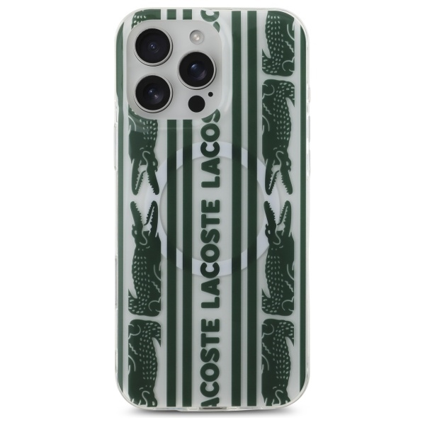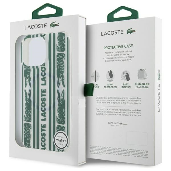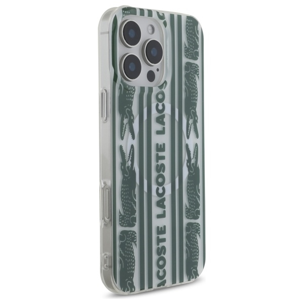 Az exkluzív minta, amely az egész tok felületét fedi, tökéletesen tükrözi a Lacoste márka egyedi stílusát, modern és elegáns megjelenést adva a készüléknek. A gyűjteményt a híres krokodil és a Lacoste logó díszíti. Az IML All Over MagSafe kollekció tokjai kizárólag a legmagasabb minőségű anyagokból készülnek. Az IMD technológiának köszönhetően a grafika hőnyomással kerül a tokra, majd egy finom TPU-réteggel bevonva, ami ellenállóvá teszi a kopással szemben. Az erős polikarbonát és a rugalmas poliuretán használata növeli a védelmet a karcolásokkal és ütések ellen, miközben biztosítja a készülék stabil fogását. A mágneses gyűrű nemcsak a MagSafe vezeték nélküli töltővel való kompatibilitást garantálja, lehetővé téve a gyors és kényelmes töltést, hanem a töltési folyamat során a készülék stabil tartását is biztosítja, megakadályozva az esetleges elmozdulásokat vagy áramkimaradásokat. A tok Lacoste márkaliszensz alatt készül.