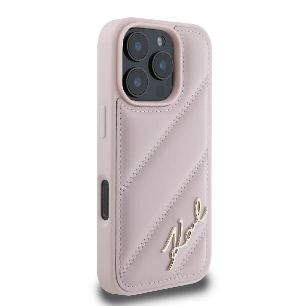 iPhone 16 Pro Pink Eredeti Pouch KARL LAGERFELD keménytok Steppelt Signature KLHCP16LPQDSMGP tok