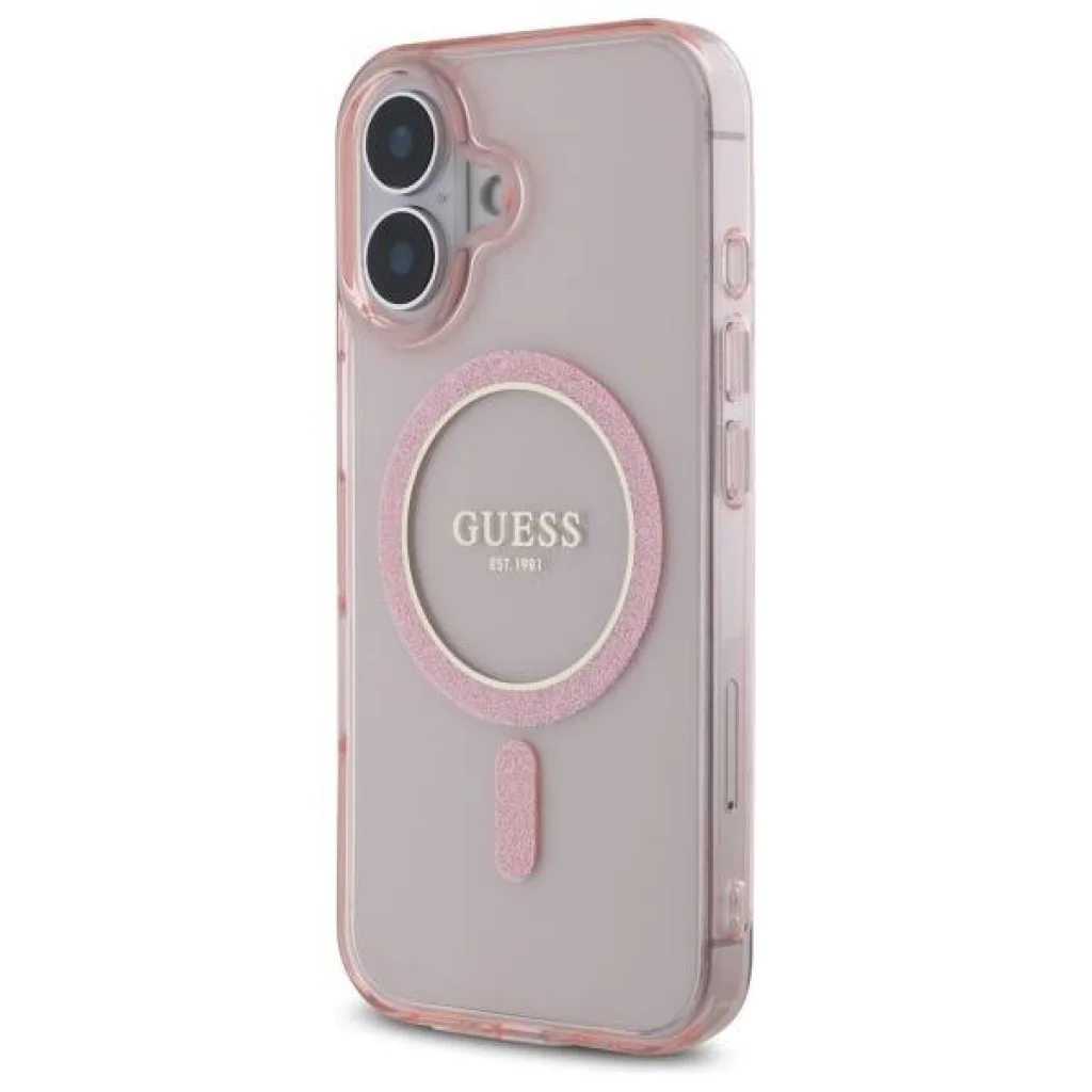 IPHONE 16 Rózsaszín Guess Hardcase IML Glitter Circle MagSafe Eredeti Tok