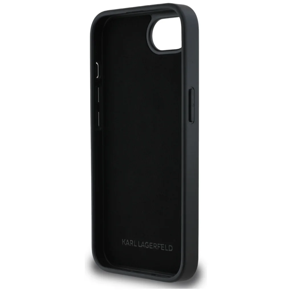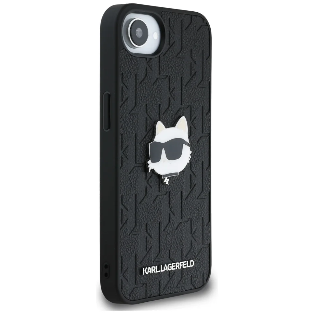 iPhone 16e fekete Original Pouch KARL LAGERFELD Monogram Choupette Head Pin tok