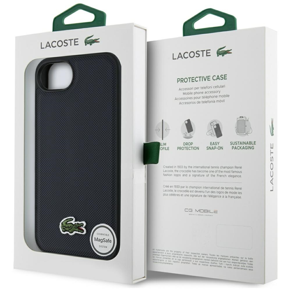 A Lacoste Iconic Petit Pique Woven Logo MagSafe kollekció tokjai kizárólag a legmagasabb minőségű anyagokból készülnek. A tok héja tartós polikarbonátból készült, amelyet egy érdekes textúrájú, kellemes tapintású poliuretán borít – a polikarbonát védelmet nyújt a karcolások és ütések ellen, míg a poliuretán biztos fogást nyújt az eszköznek. A tok rugalmas szélei lehetővé teszik a könnyű és gyors telepítést.