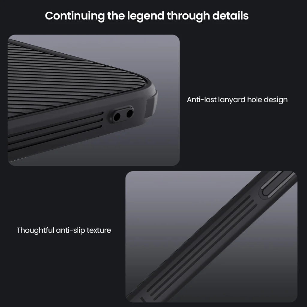 A Nillkin CamShield PRO egy egyedi tok, amely csúsztatható kamera lencsevédővel rendelkezik.